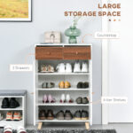 HOMCOM Shoe Cabinet with Doors for Entryway Modern Storage Organizer with Shelves Drawers for Hallway for 12 pairs Walnut | Aosom Canada