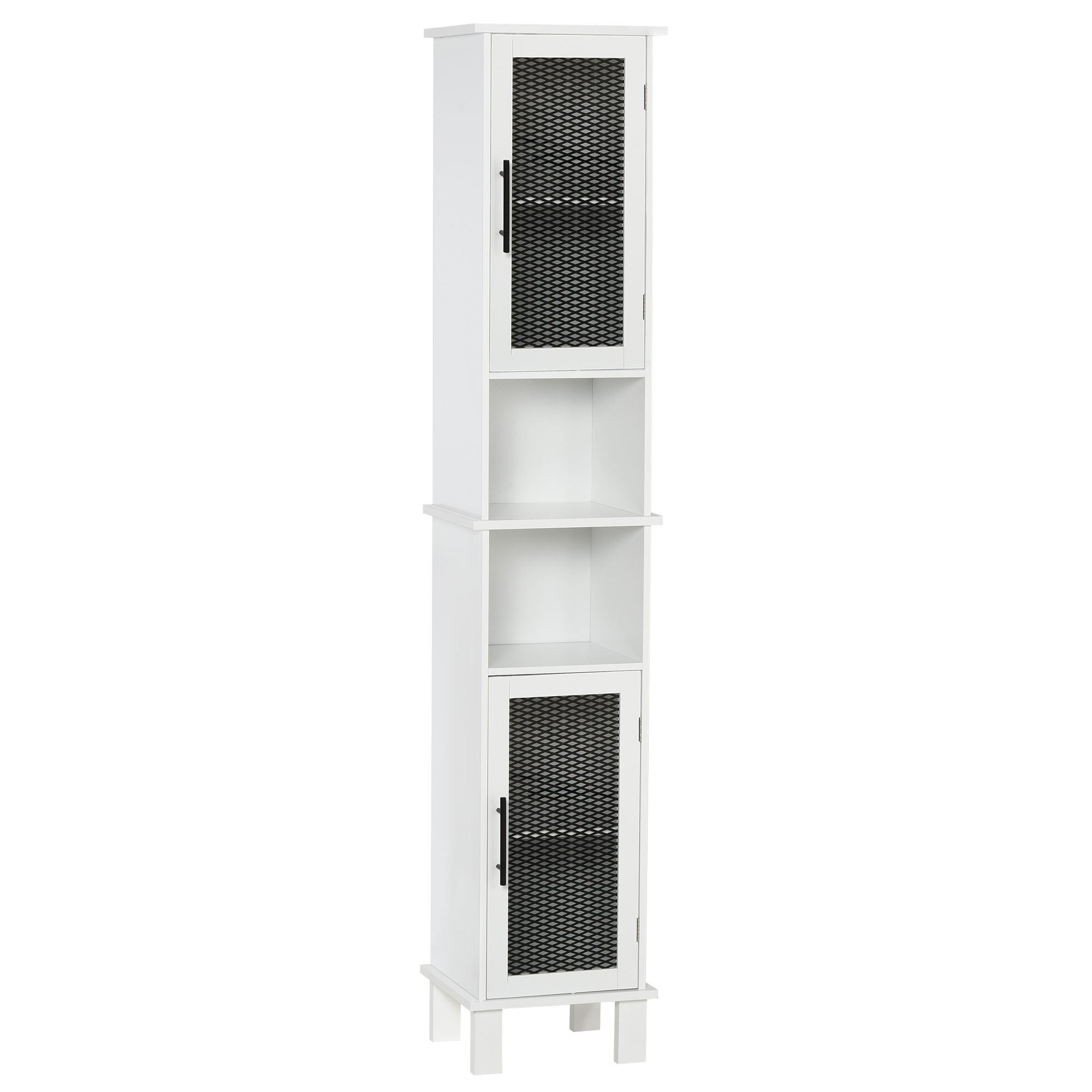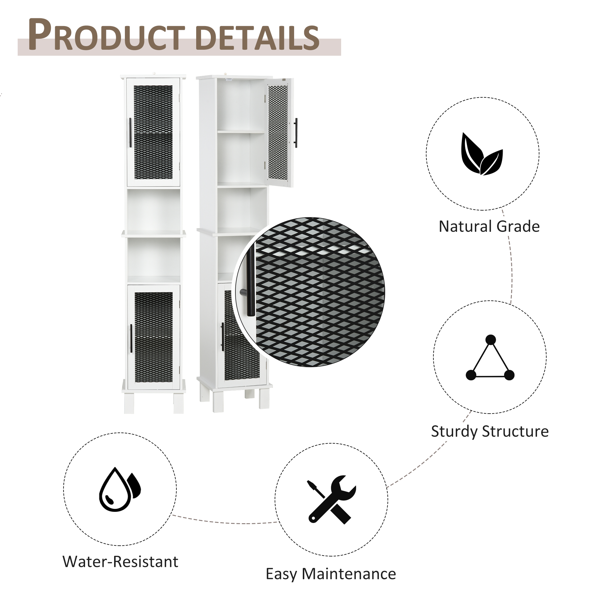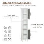 - Quality Material: Constructed of MDF frame, this slim bathroom cabinet is solid and durable in your daily use. Water-resistant painted finish keeps the tall cabinet with doors safe from water damage and easy to clean.