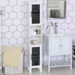 - Chic Design: Reticulate glass creates chic style. Slim vertical design makes this slim bathroom storage cabinet great for using in limited places. You can also use it as a bookcase in the living room, as a corner cabinet in the kitchen, as a pantry cabinet, or as a storage cabinet to the hallway