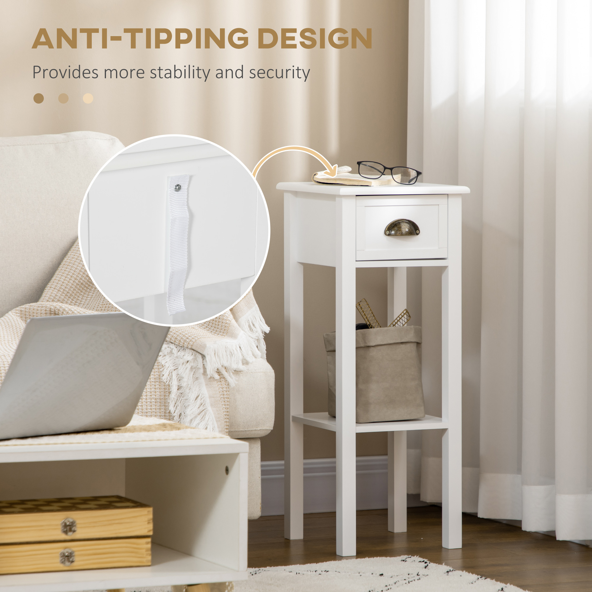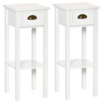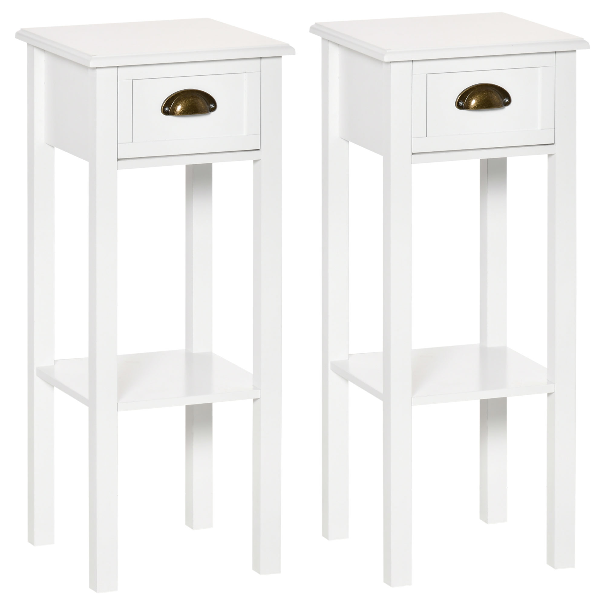 HOMCOM Slender Nightstands: Set of 2 Narrow 2-Tier End Tables with Drawer and Shelf, Slim Wooden Side Tables for Living Room | Aosom Canada
