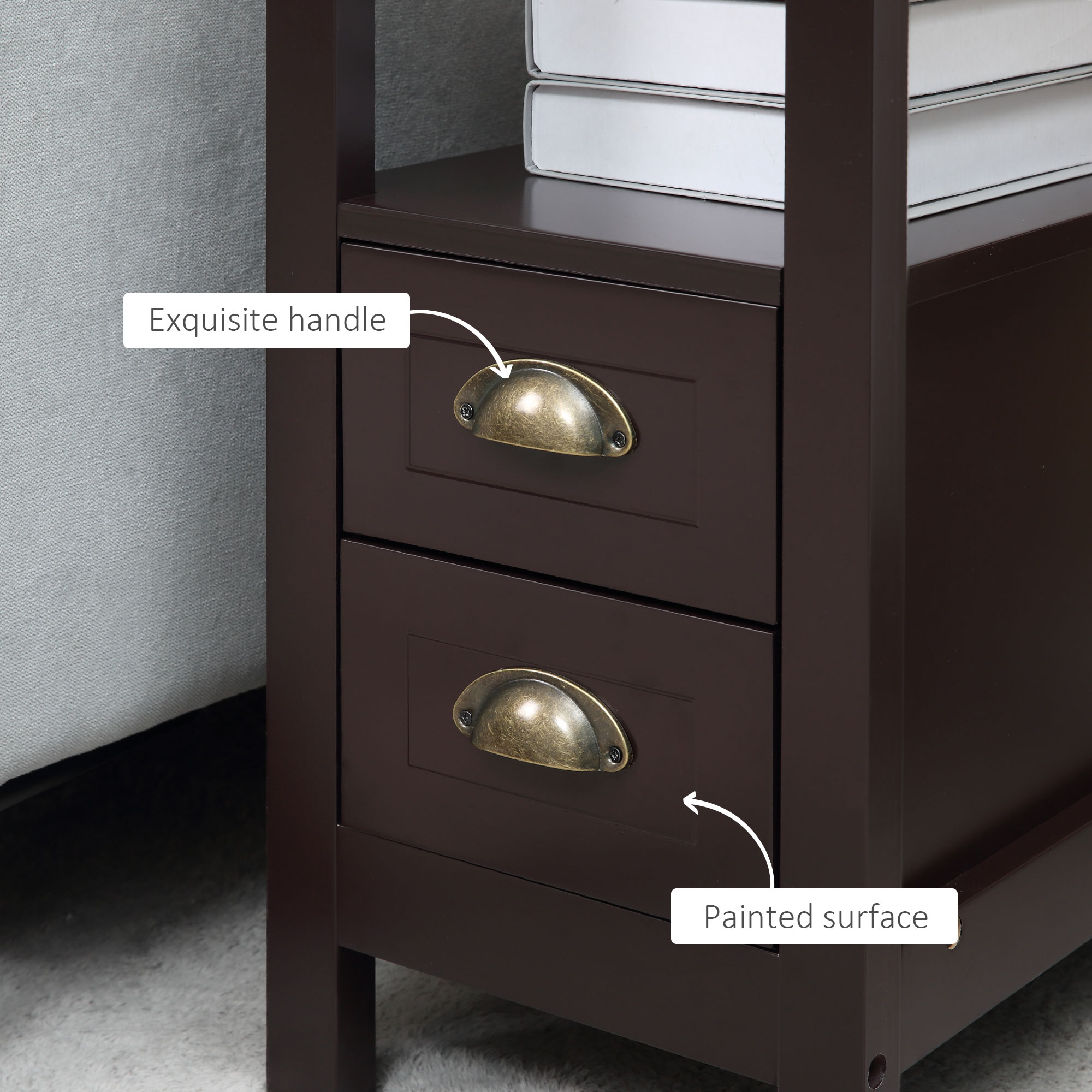 HOMCOM Slim Side Table: Narrow End Table with 2 Drawers and Storage Shelf, Sofa Side Table for Living Room, Compact Nightstand | Aosom Canada