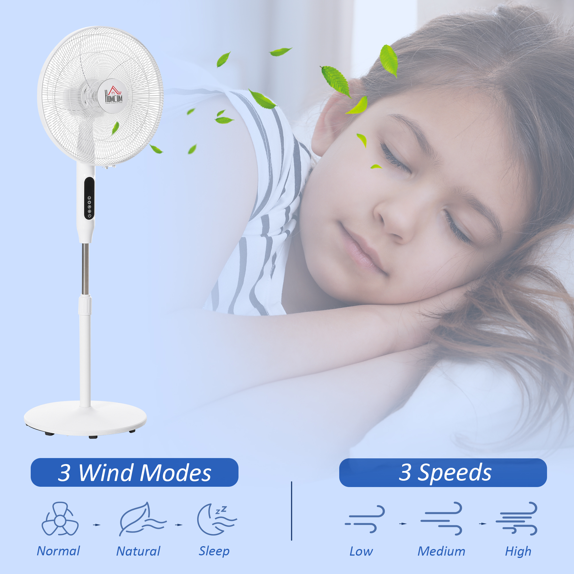 - 3 Modes & 3 Speeds: The powerful fan features 3 modes (Normal, Natural, Sleep), and 3 speeds (High, Medium, Low), offering 9 different air flow options to meet various cooling needs, while keeping quiet to avoid disturb you.