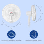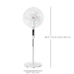 - Stand Fan Dimension: Overall Dimension: 17.75”W x 16.5”D x 46.5”-54.25”H, Voltage: 110-120V/60Hz, Power: 60W.
