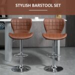 HOMCOM Swivel Bar Stools Set of 2 Height Adjustable Footrest Metal Frame for Kitchen Dining Pub Brown | Aosom Canada