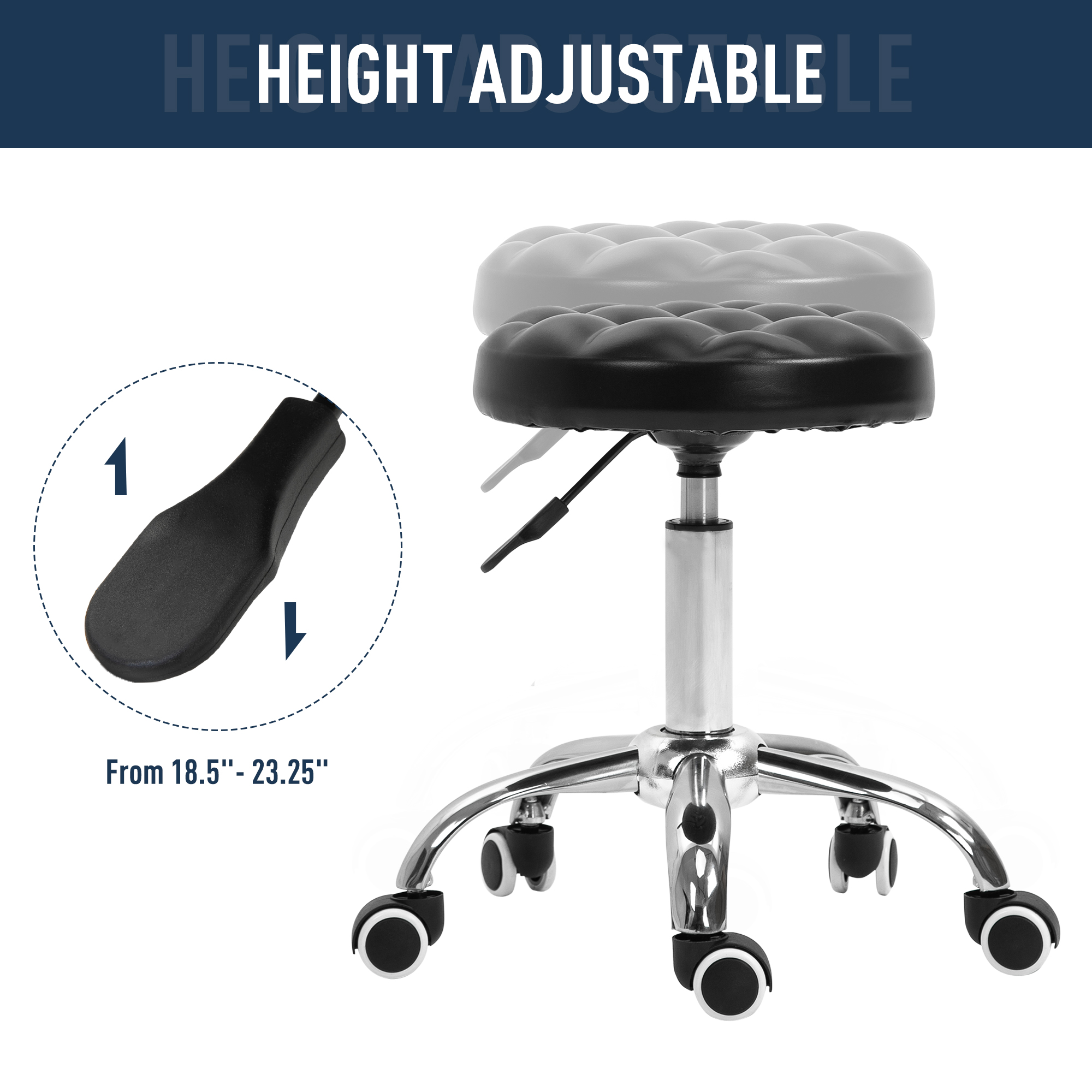 - ADJUSTABLE HEIGHT: Our lash chair is built with a heavy-duty gas lift cylinder to adjust height from 18.5 to 23.25 inches