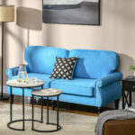 HOMCOM Traditional Style Double Sofa with Sponge Padding and Rubber Wood Leg, 2 Seater Nail Head Accent Loveseat, Light Blue | Aosom Canada