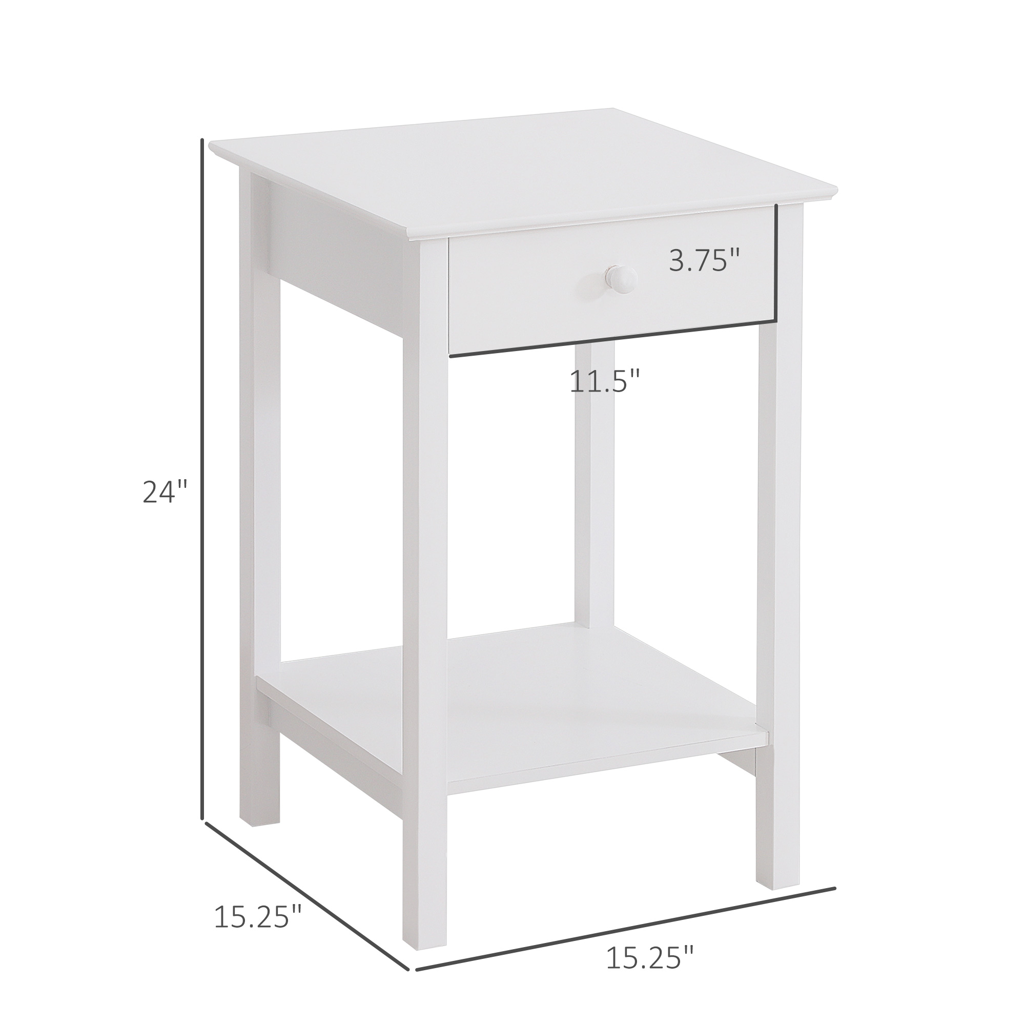 HOMCOM Versatile Bedside Table: Multipurpose Night Stand with Drawer and Storage Shelf, End Side Table for Bedroom, White | Aosom Canada