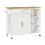 HOMCOM Versatile Valet: Wooden Rolling Kitchen Island with 360° Swivel Wheels, Dining Cart with Drawer, White Finish | Aosom Canada