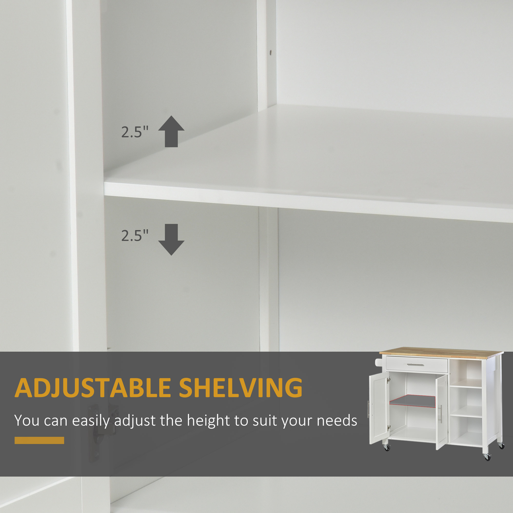 - Flexible Shelf: The shelf inside the kitchen storage cabinet is 3-level adjustable and detachable to fit different heights of your items.