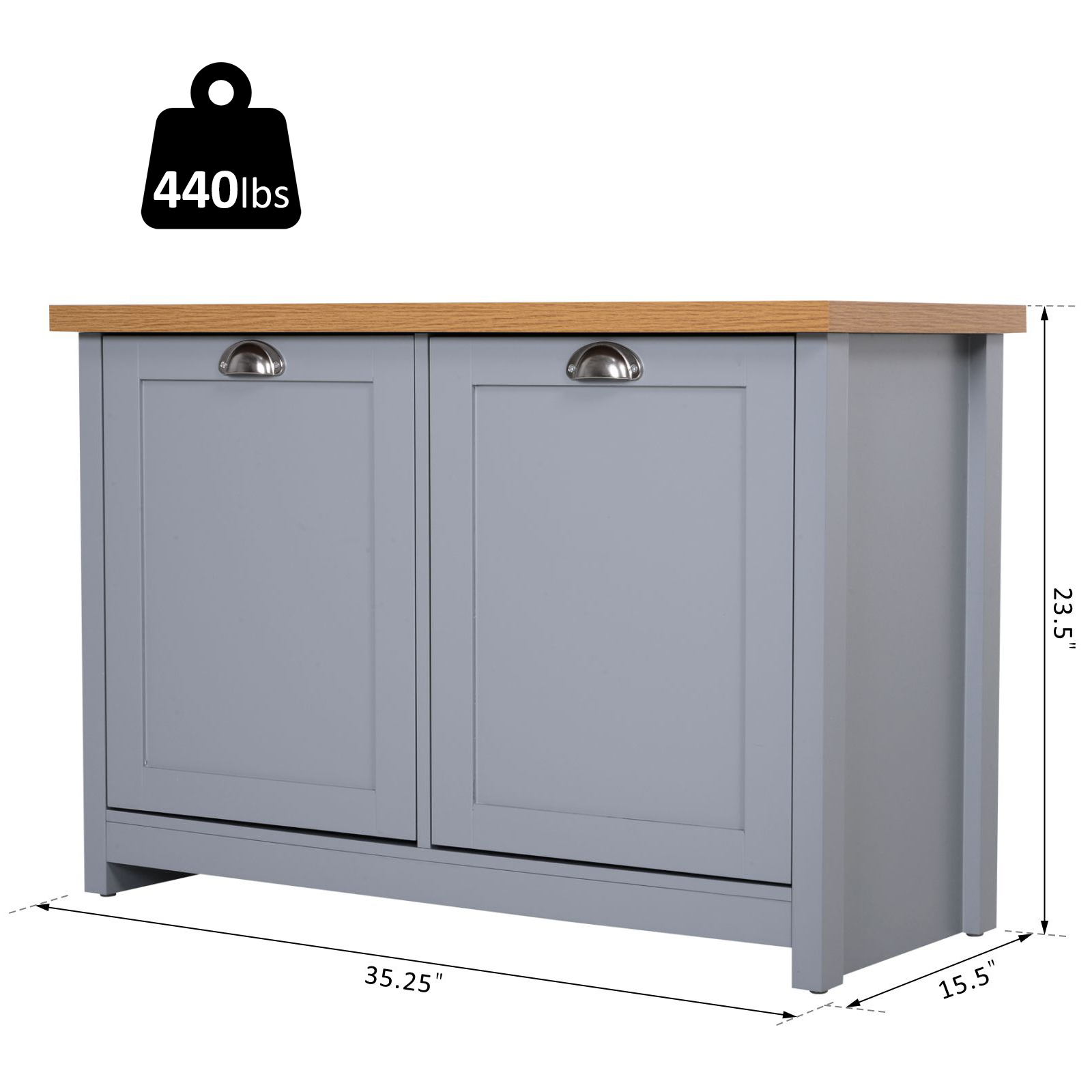 - Shoe Storage Organizer Information: Max Load: 440lbs(Total), 330lbs (tabletop), 11lbs (Shelf). Overall Dimension: 35.25” W x 15.5” D x 23.5” H. Assembly required.