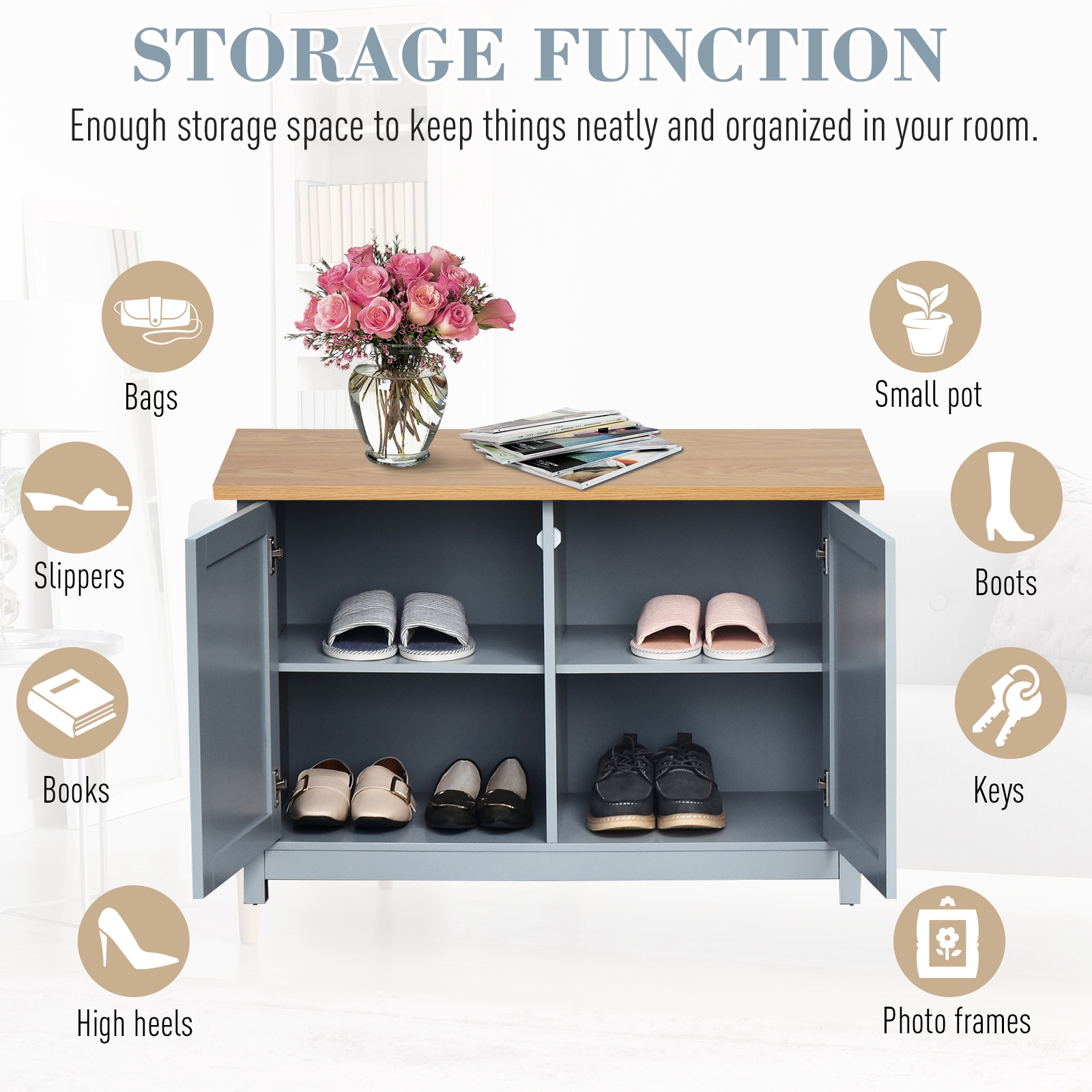 - Storage Solution: Our shoe storage cabinet features with 4 compartments storage to place your slippers, high-heeled shoes or boots, and an open storage on top for decoration items or daily essentials for each reach. Come with magnetic door closures for easy open and close