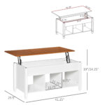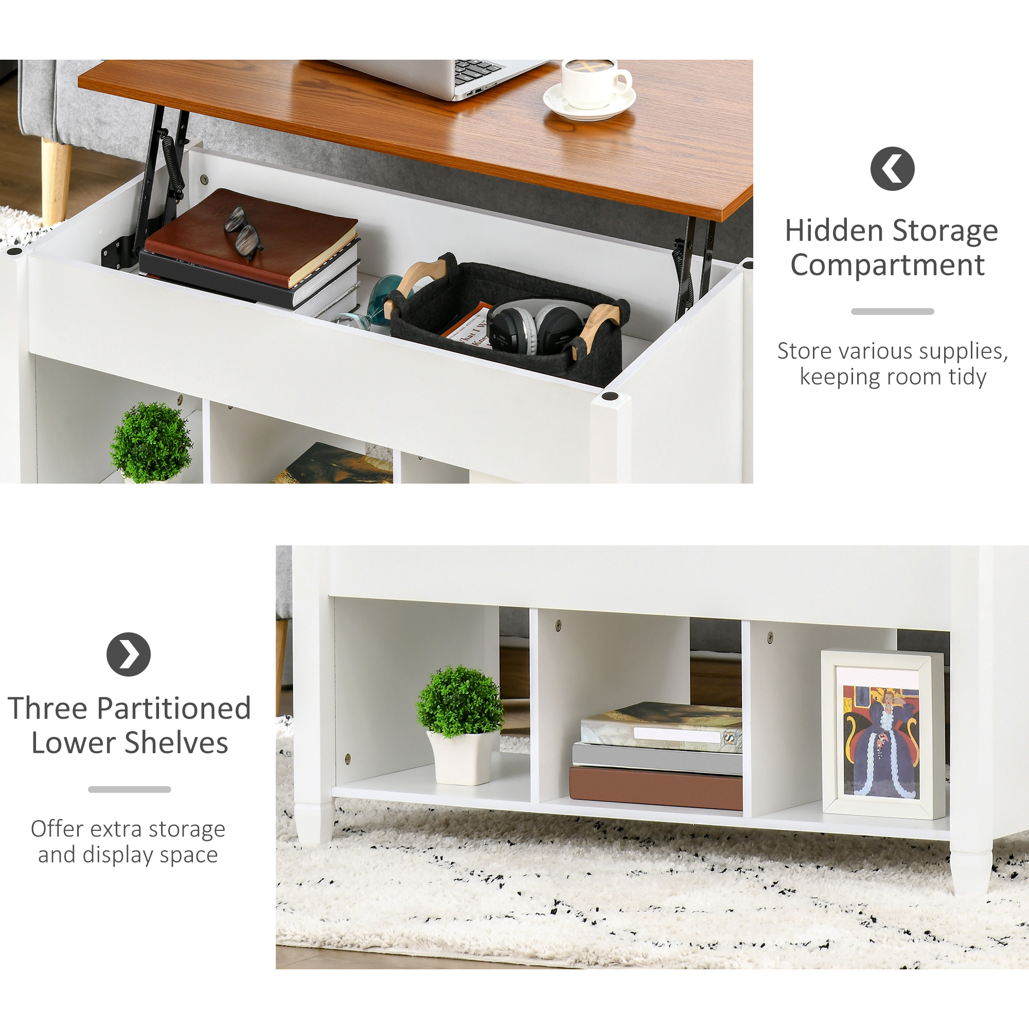 HOMCOM White & Brown Lift Top Coffee Table: Pop-Up Center Table with Hidden Storage, 3 Lower Shelves for Living Room | Aosom Canada