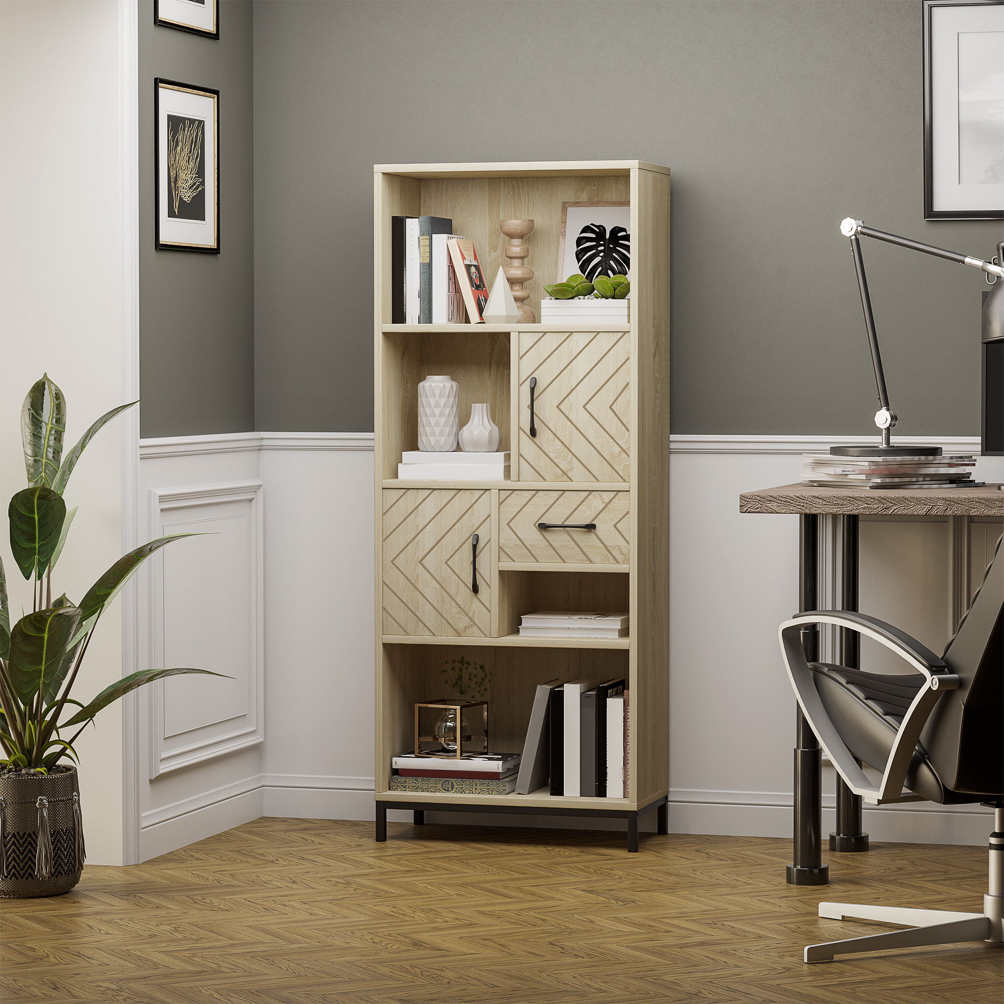 HOMCOM Wooden Elegance: 59″ Freestanding Bookcase with Cabinets, Drawer, Open Shelves, Display Shelf for Home Office Organizer | Aosom Canada