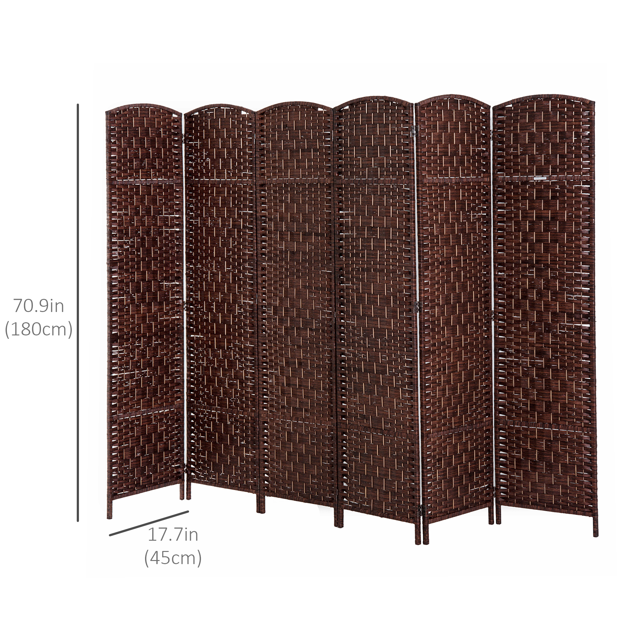 HOMCOM Woven Artistry Room Divider: 6-Panel Indoor Privacy Screen with Chestnut Brown Wicker Weave | Aosom Canada
