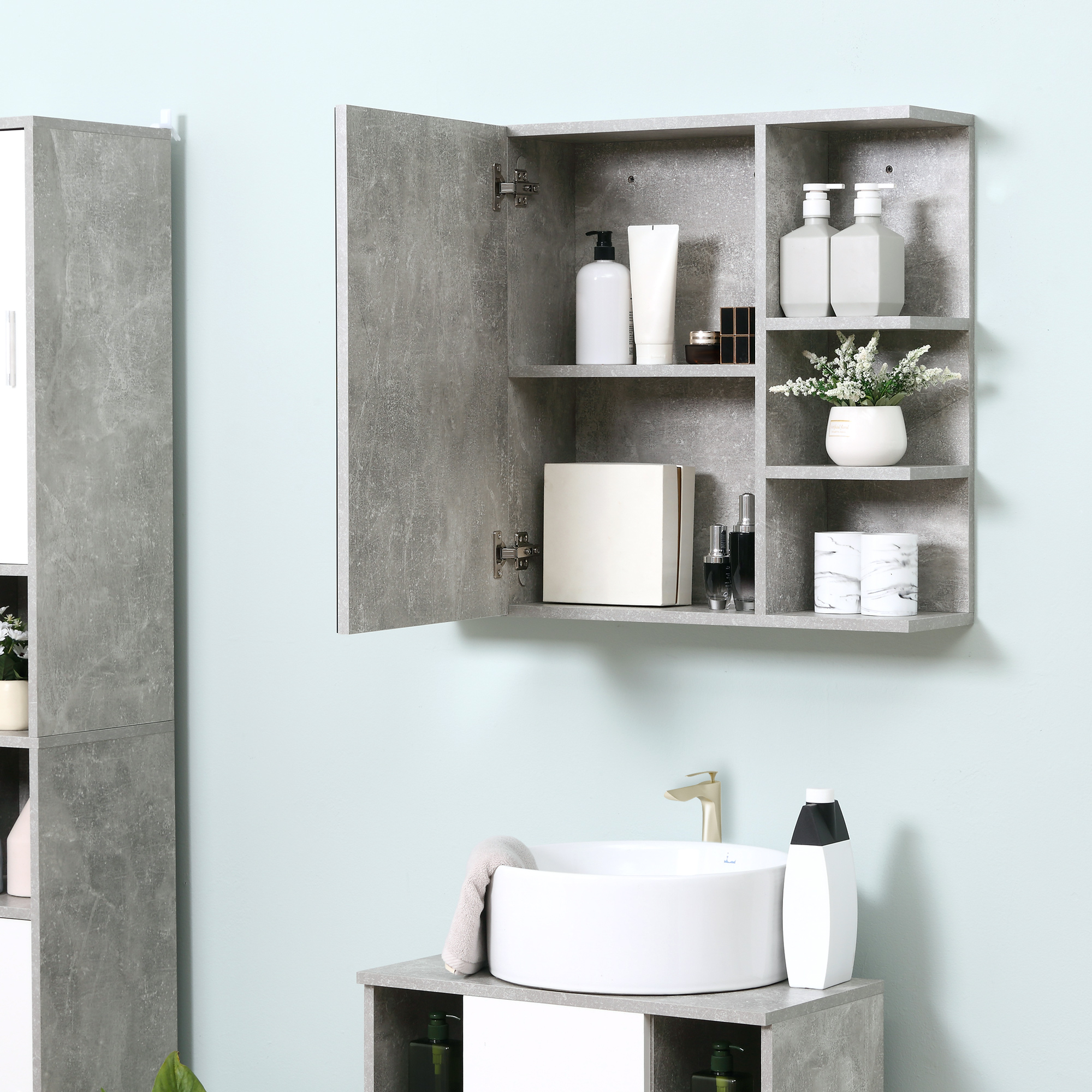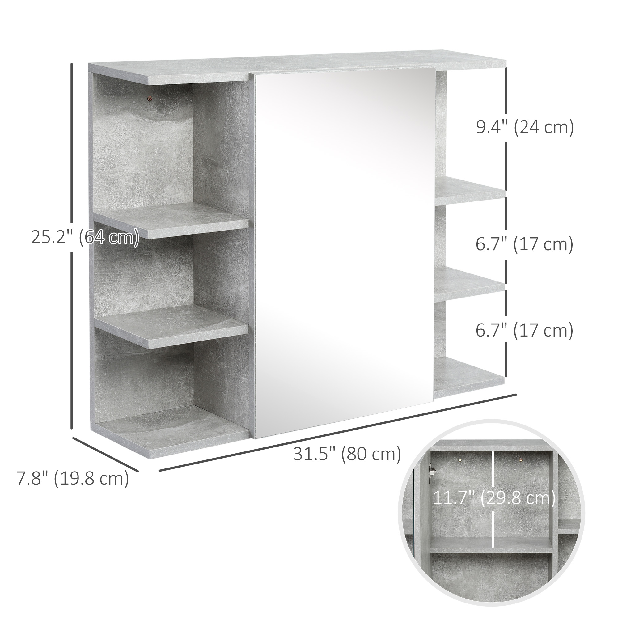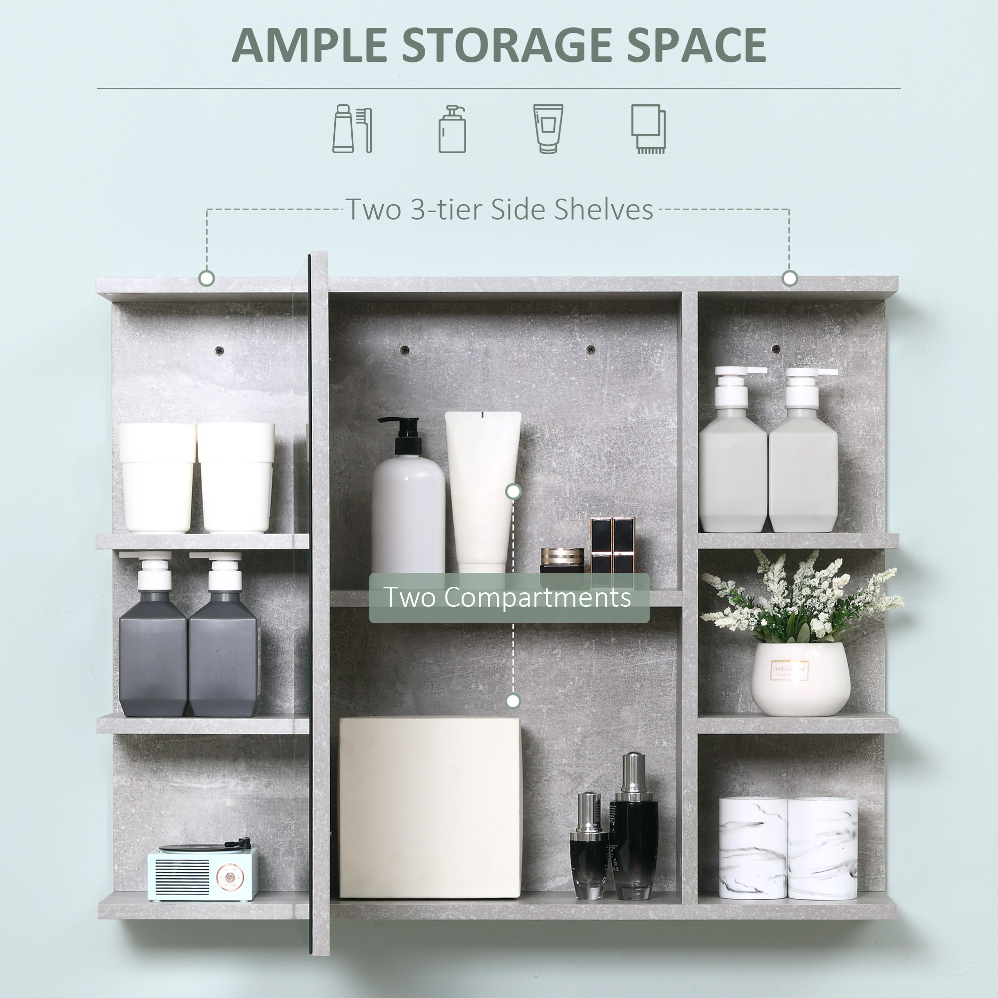 Kleankin Grey Urban Cabinet: Contemporary Bathroom Storage with 6 Open Shelves & Mirrored Medicine Design | Aosom Canada
