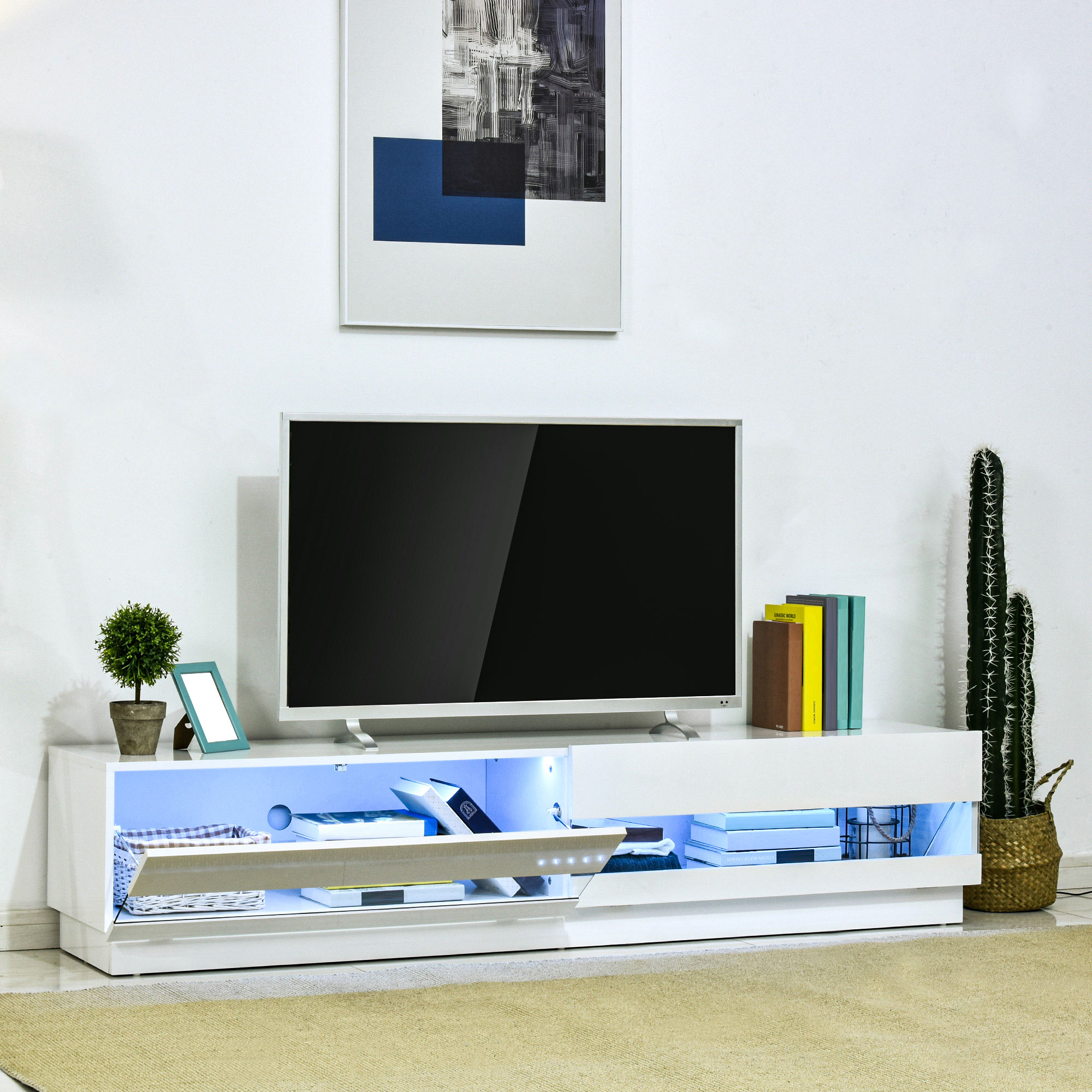 OMCOM High Gloss White TV Stand Cabinet for 65″ TVs LED Light Entertainment Media Console Storage | Aosom Canada