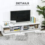 - TV Table Info: Overall dimensions: 70.9″ L x 15.7″ W x 15″ H (180 x 40 x 38 cm), Weight capacity: 176lbs (80 kg). Assembly required