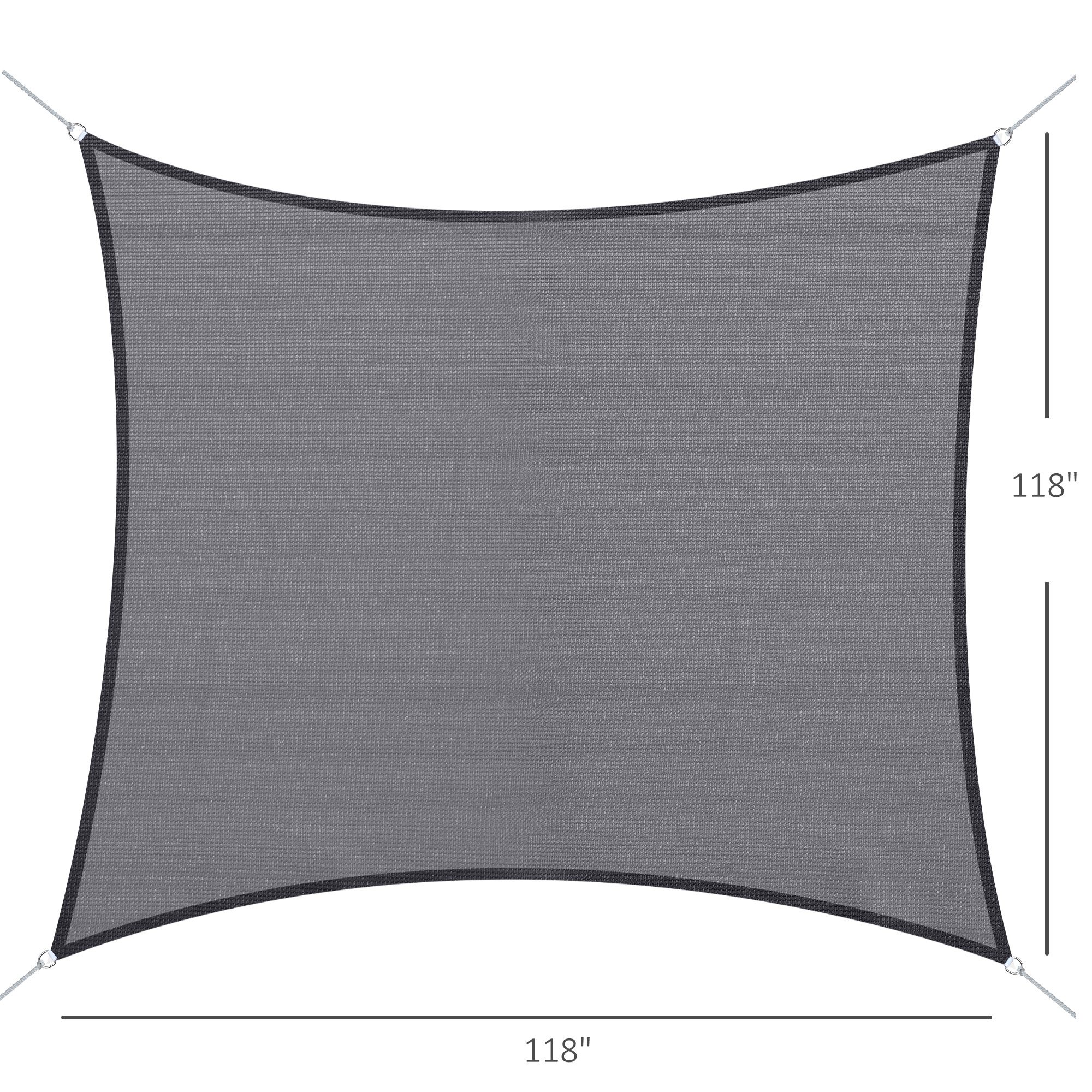 - Sun Shade Dimensions: 9.8ft x 10ft, with 9.8’length and 4.5mm diameter PE rope Note: Please install the shade cloth obliquely to help rainwater flow down quickly when it rains