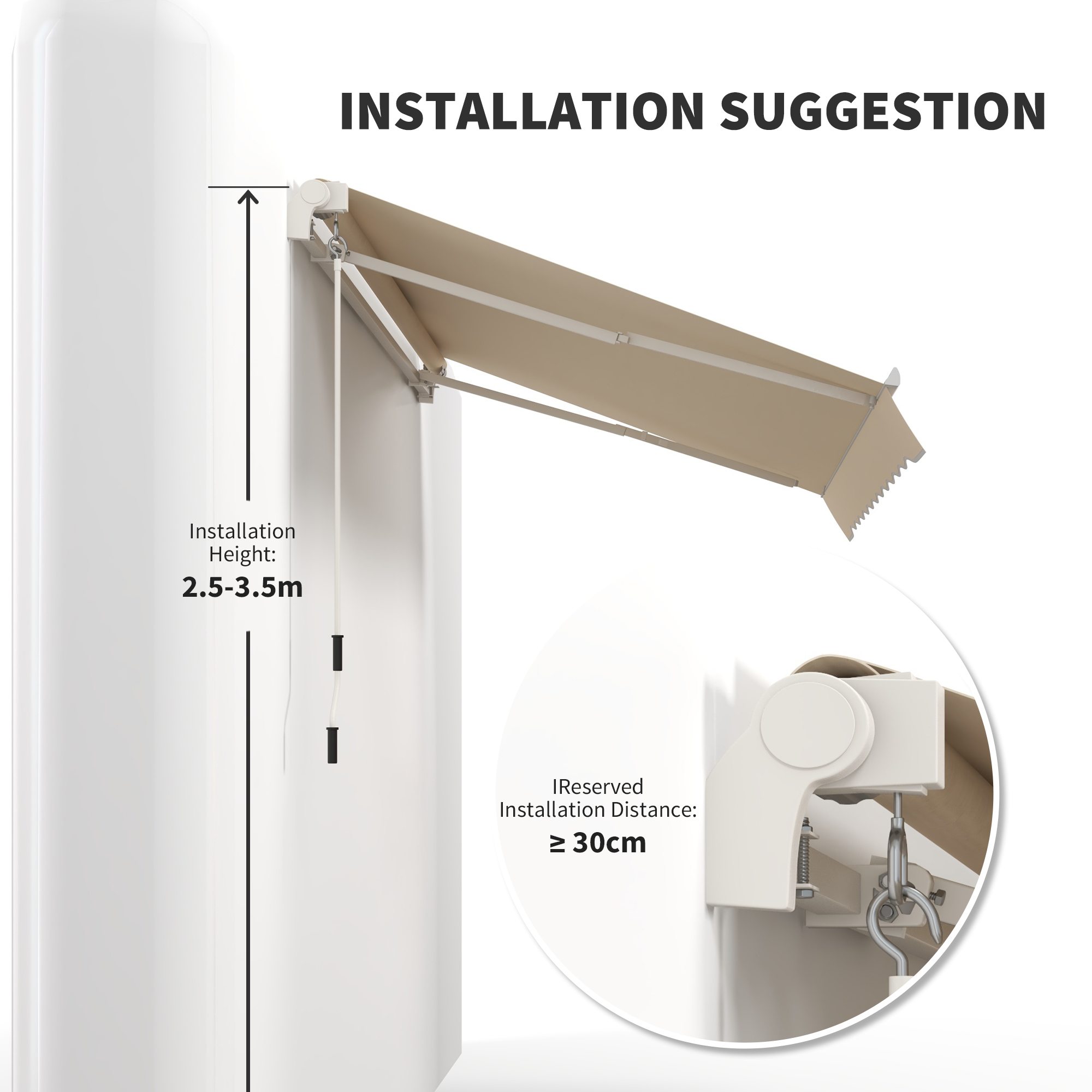 Outsunny 10’x8′ Manual Retractable Patio Awning Water Resistant Sun Shade Outdoor Deck Canopy Aluminum Beige | Aosom Canada