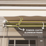 - Solid Frame: This deck awning is constructed of an aluminum and metal frame. Metal square tube ensures stability and sturdiness. A light but powder-coated aluminum frame resists breakdown and for expanded longevity.