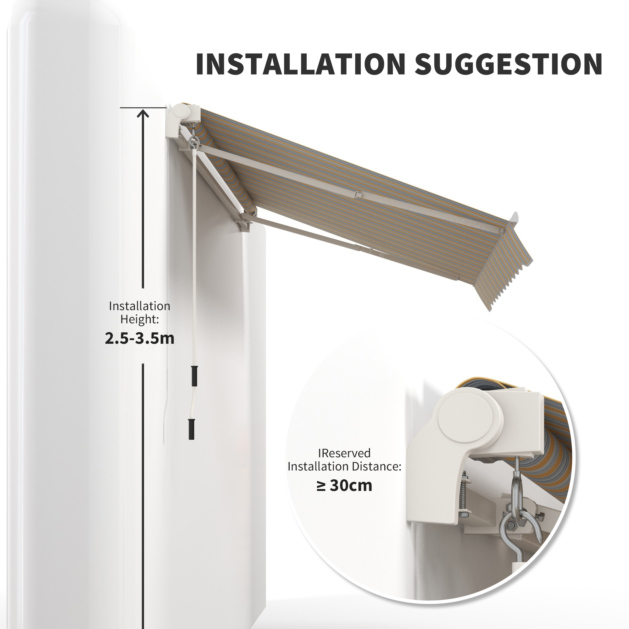 - Adjustable Protection: You can adjust the height of the extension arm on the telescopic rod by loosening the locking screw, allowing you to adjust the tilt angle from 45-85°, which can provide you with better shade according to different levels of sunshine, and the height of the deck awning ends can also be adjusted.