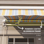 - Solid Frame: This deck awning is constructed of an aluminum and metal frame. Metal square tube ensures stability and sturdiness. A light but powder-coated aluminum frame resists breakdown and for expanded longevity.