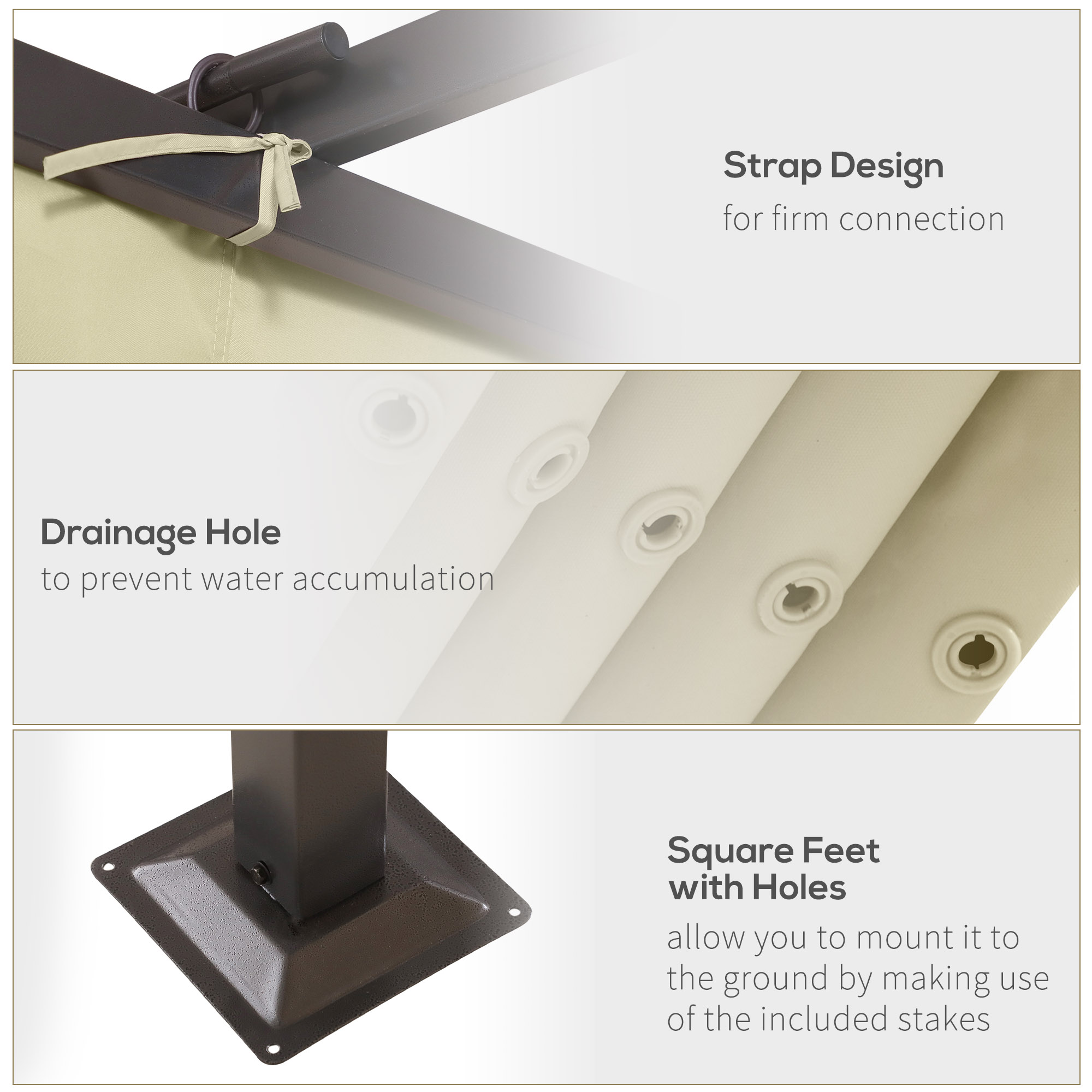 - PRACTICAL SHELTER: The pergola canopy fabric has been treated with a PU coating for UV resistance to keep you shaded on warm and sunny days. The canopy is equipped with water drainage holes to reduce water build up.