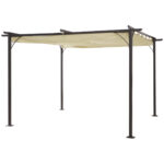 Outsunny 11.5′ Pergola Retractable Gazebo Shade Deck Shelter with Steel Frame, Polyester Square Canopy, Beige | Aosom Canada