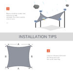 - SunShade Dimensions: 12’L x 12’W, with 8.2’length and 4-5mm diameter PE rope