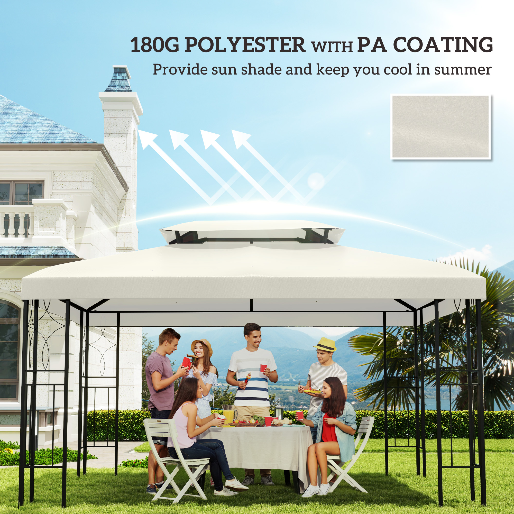 Outsunny 13′ x 10′ Gazebo Replacement Canopy Cream White UV Protection Top Cover for Outdoor Patio Garden Pavilion | Aosom Canada