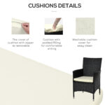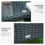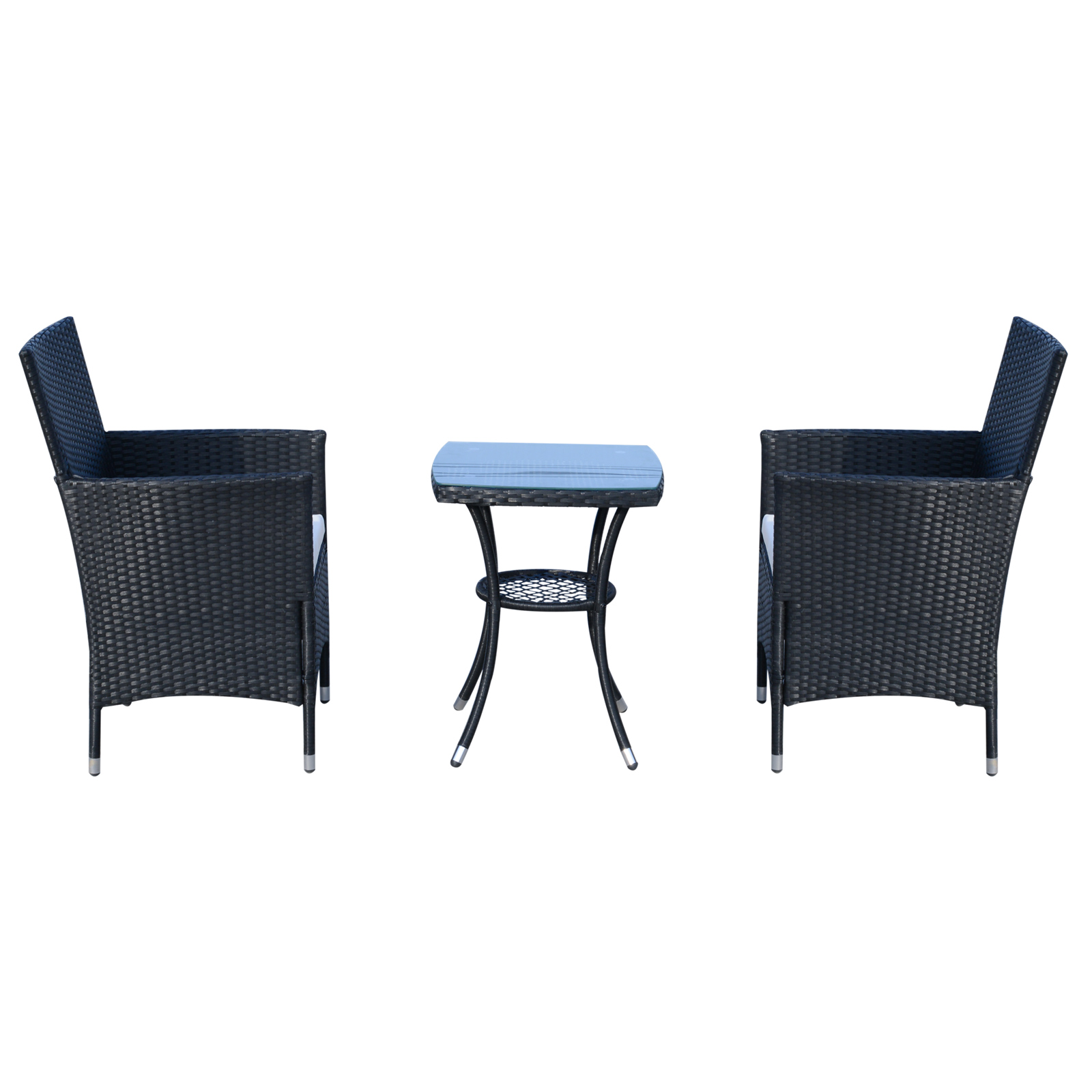 Outsunny 3PC Patio Bistro Set Outdoor Rattan Furniture Two Armchairs Glass Top Coffee Table Porch Black | Aosom Canada