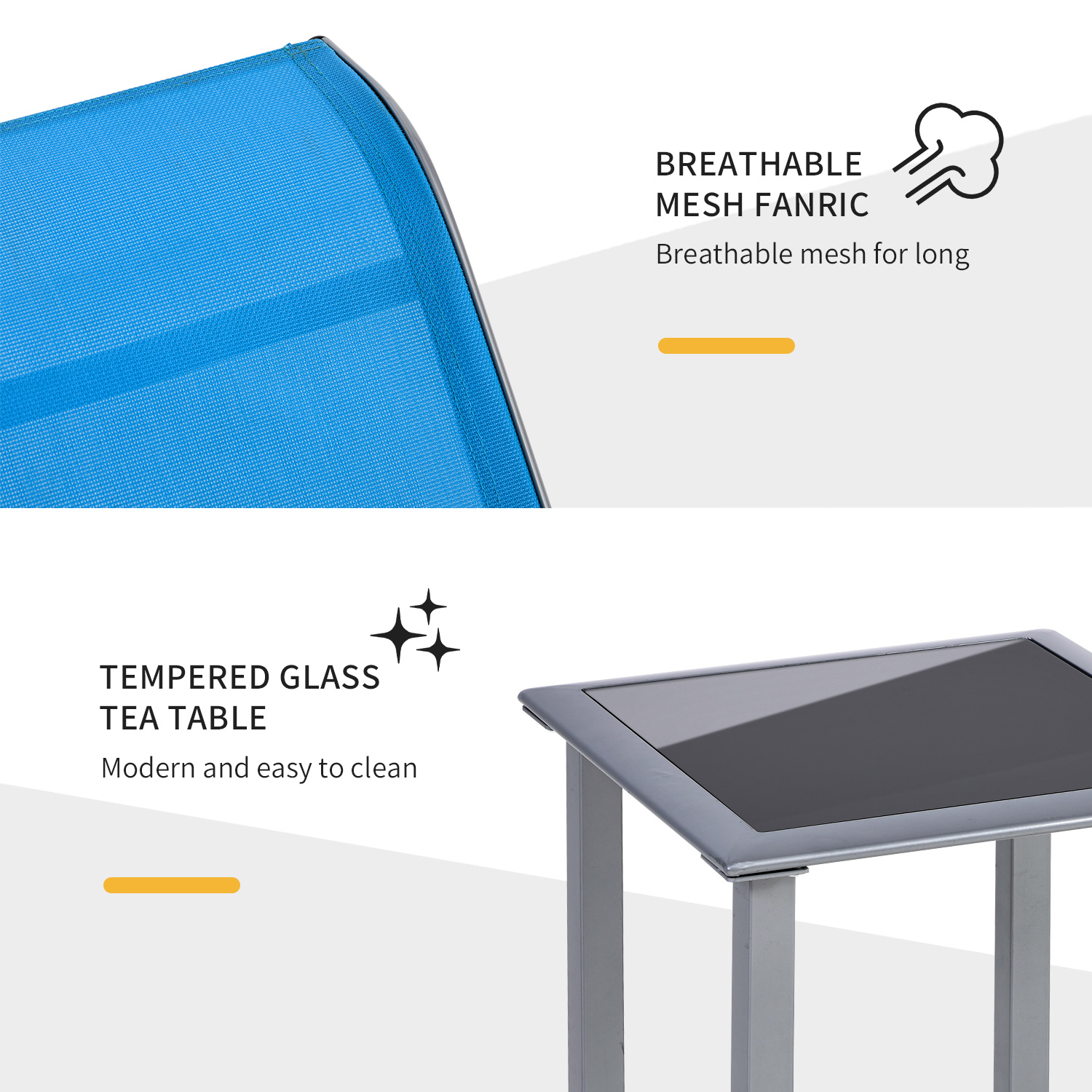 Outsunny 3pc Patio Lounge Set: Outdoor Sunbathing Chairs with Side Table, Blue Hue for Relaxation | Aosom Canada