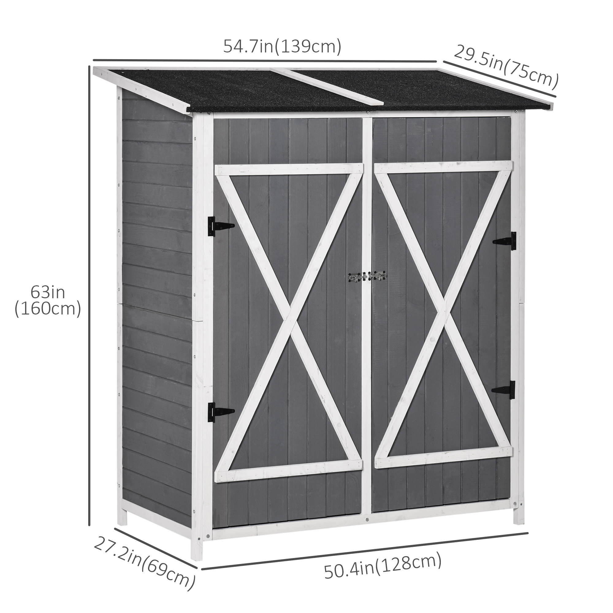 Outsunny 54.75”x29.5”x63” Garden Storage Shed Asphalt Roof Wooden Timber Double Door Utility Storage House w/ Movable Shelf | Aosom Canada