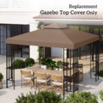 Outsunny 9.8′ Square Coffee 2-Tier Gazebo Canopy Replacement – Durable Outdoor Garden Sun Shade Top Cover | Aosom Canada