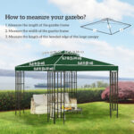- Size: Overall Dimension: 9.8′ x 9.8′, Flouncing Width: 7.1″; Note: We do not suggest this canopy replacement top on any frame that’s bigger than 9.8×9.8ft as it will compromise the strength. Please measure the length and width of the gazebo frame and the size of the bevelled edges of the big top before purchasing.