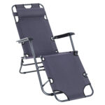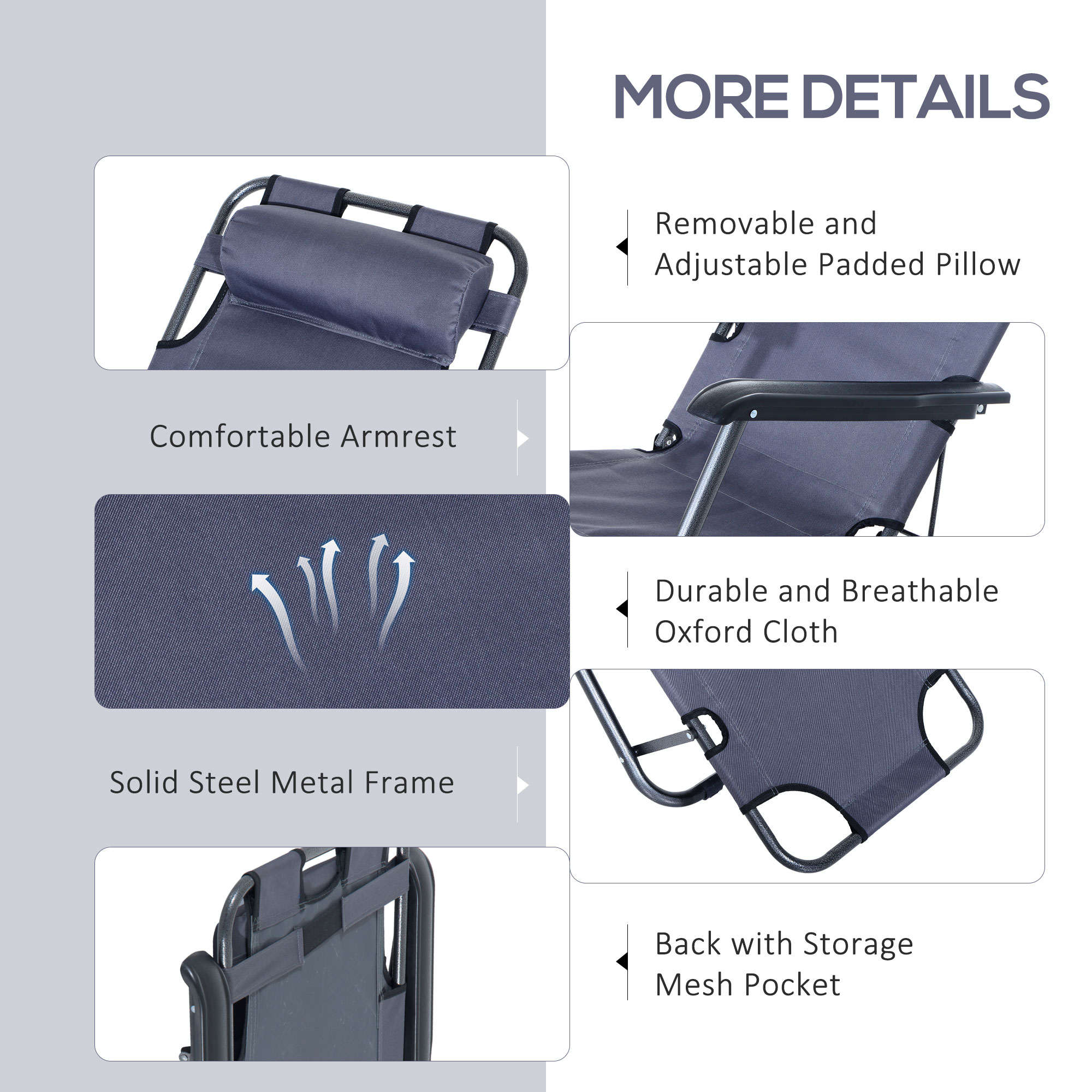 Outsunny Adjustable Folding Chaise Lounge Chair Portable Recliner Sun Lounger Outdoor Garden Seat with Pillow Grey | Aosom Canada