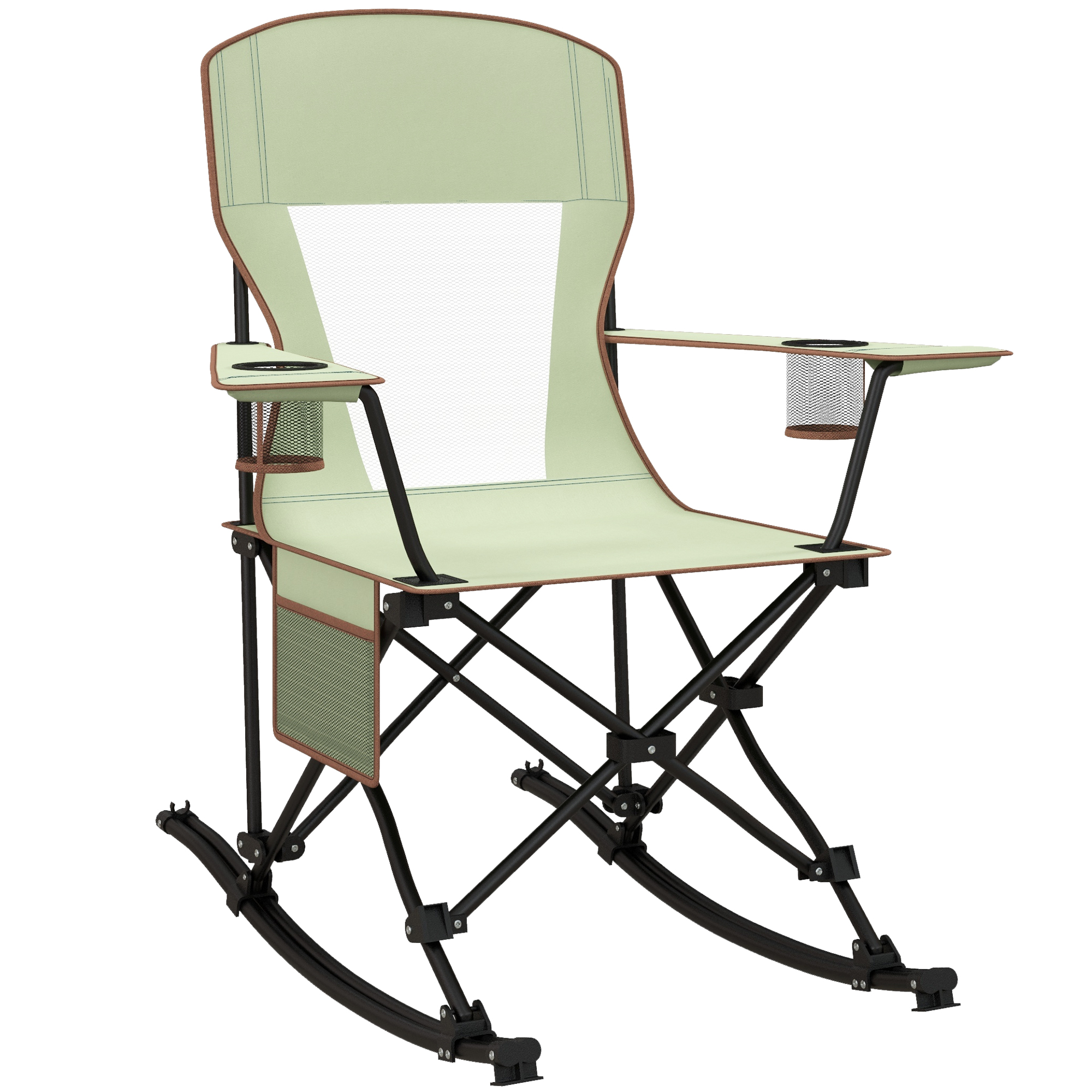 Outsunny Camping Folding Chair Portable Rocking Chair w/ Armrest Cup Holder Compact and Sturdy in a Bag for Outdoor Beach Picnic Green | Aosom Canada