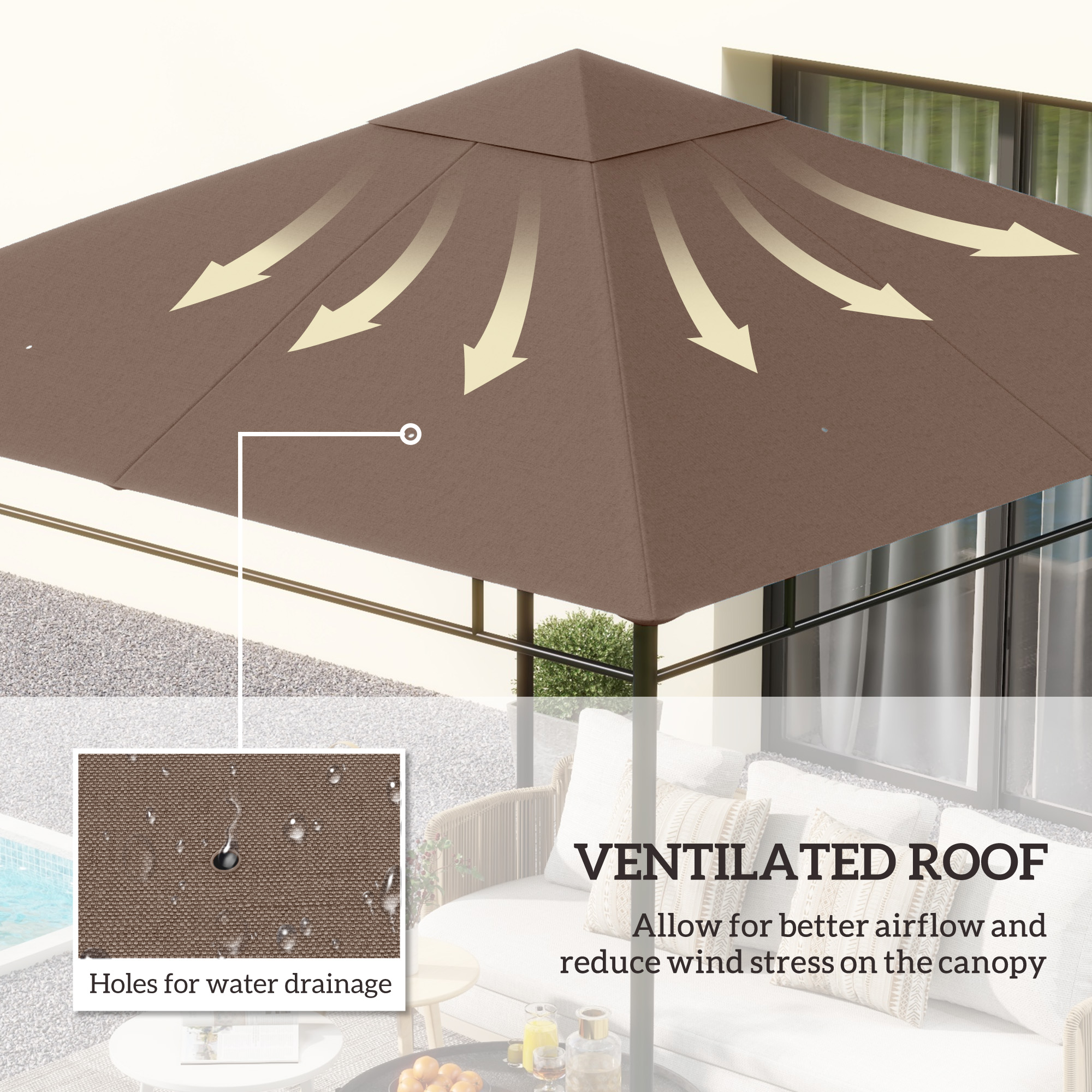 Outsunny Gazebo Canopy Replacement 9.84 x 9.84ft UV Protected Top Sun Shade Coffee | Aosom Canada