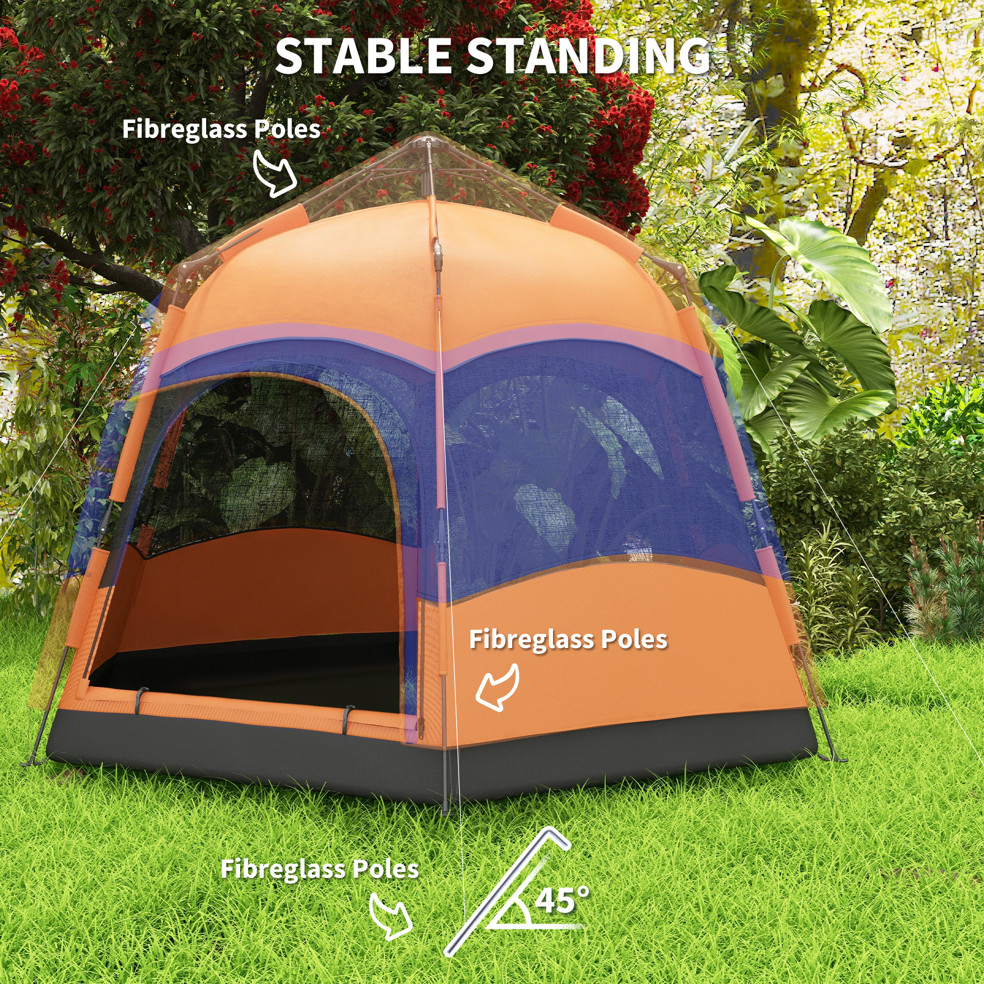 - Quality Materials: 190T Water-resistant polyester tent with strong flexible fiber glass poles guarantee stability. Qualified oxford floor fabric makes it wear-resistant. The metal stakes and ropes keep the tent stabilized in the wind.