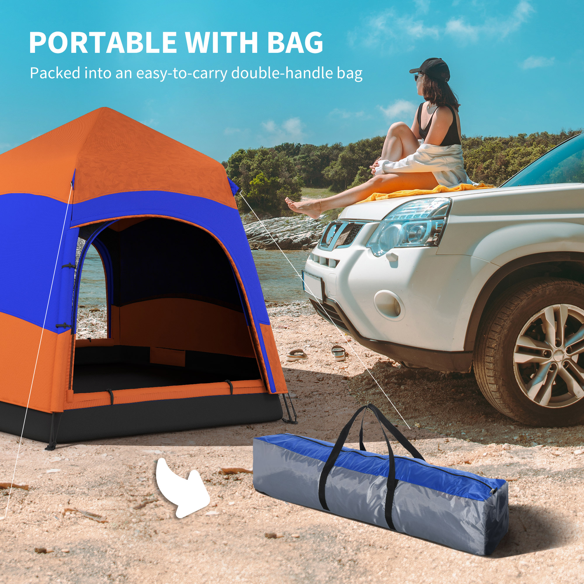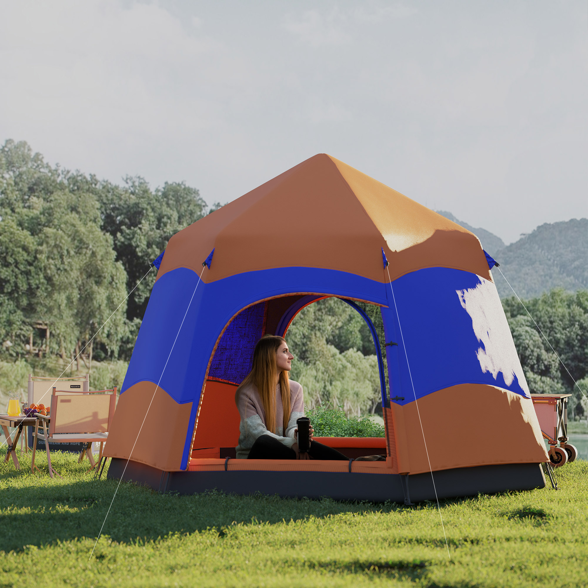 Outsunny Hexagon Double Layer Camping Tent 5-6 People Portable Easy Pop Up | Aosom Canada
