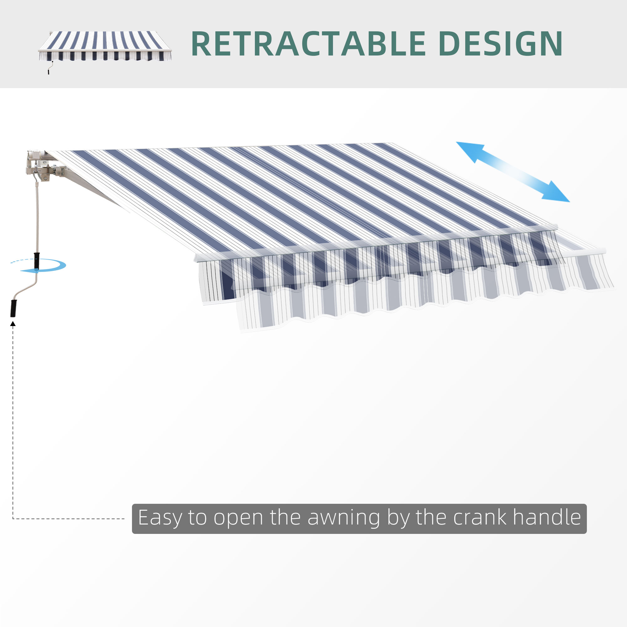 Outsunny Manual Retractable Awning 8’x7′ Water-resistant Sun Shade Patio Canopy Blue White Outdoor Shelter | Aosom Canada