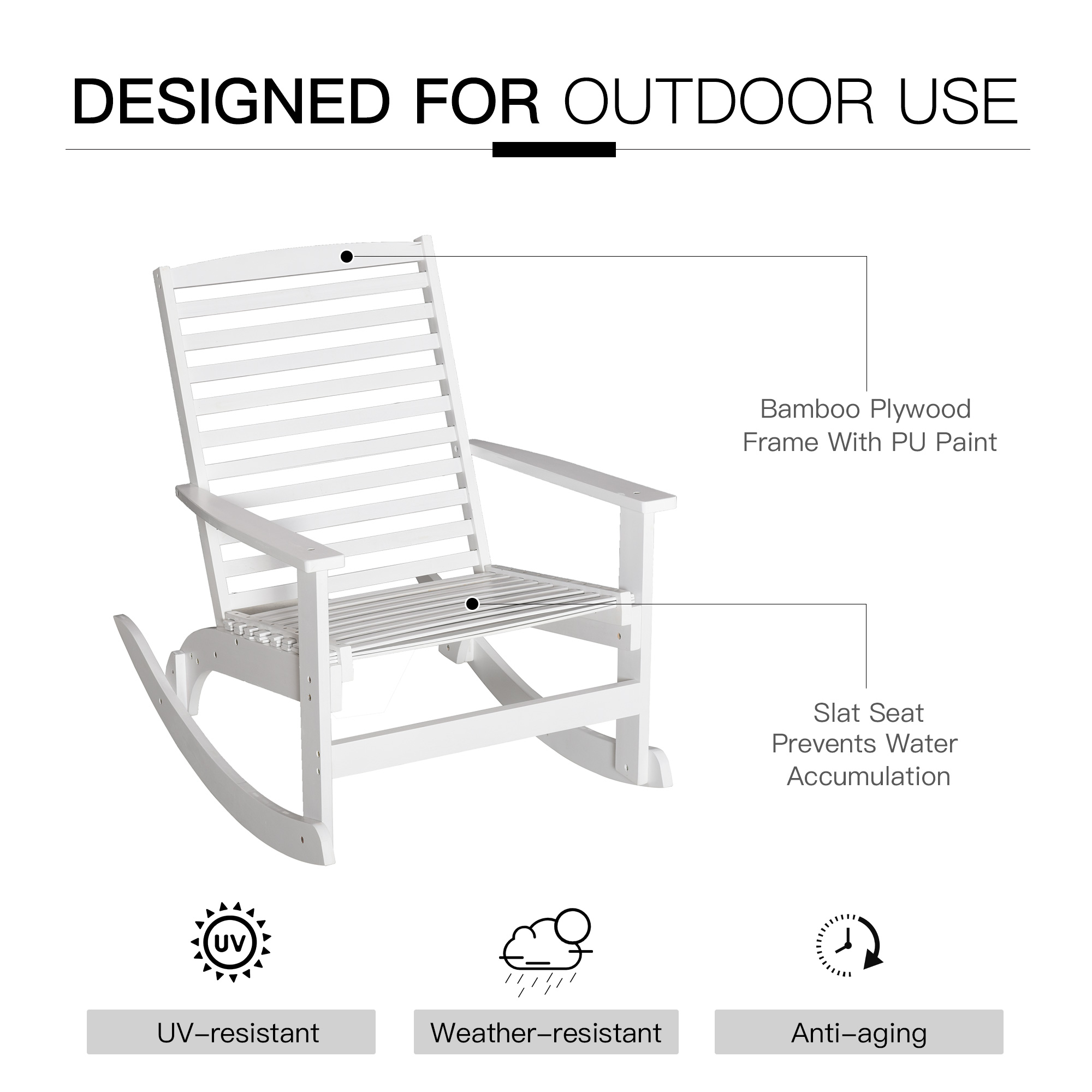 Outsunny Patio Rocking Chair Non-slip Porch Rocker for Balcony Garden Terrace Bamboo White | Aosom Canada