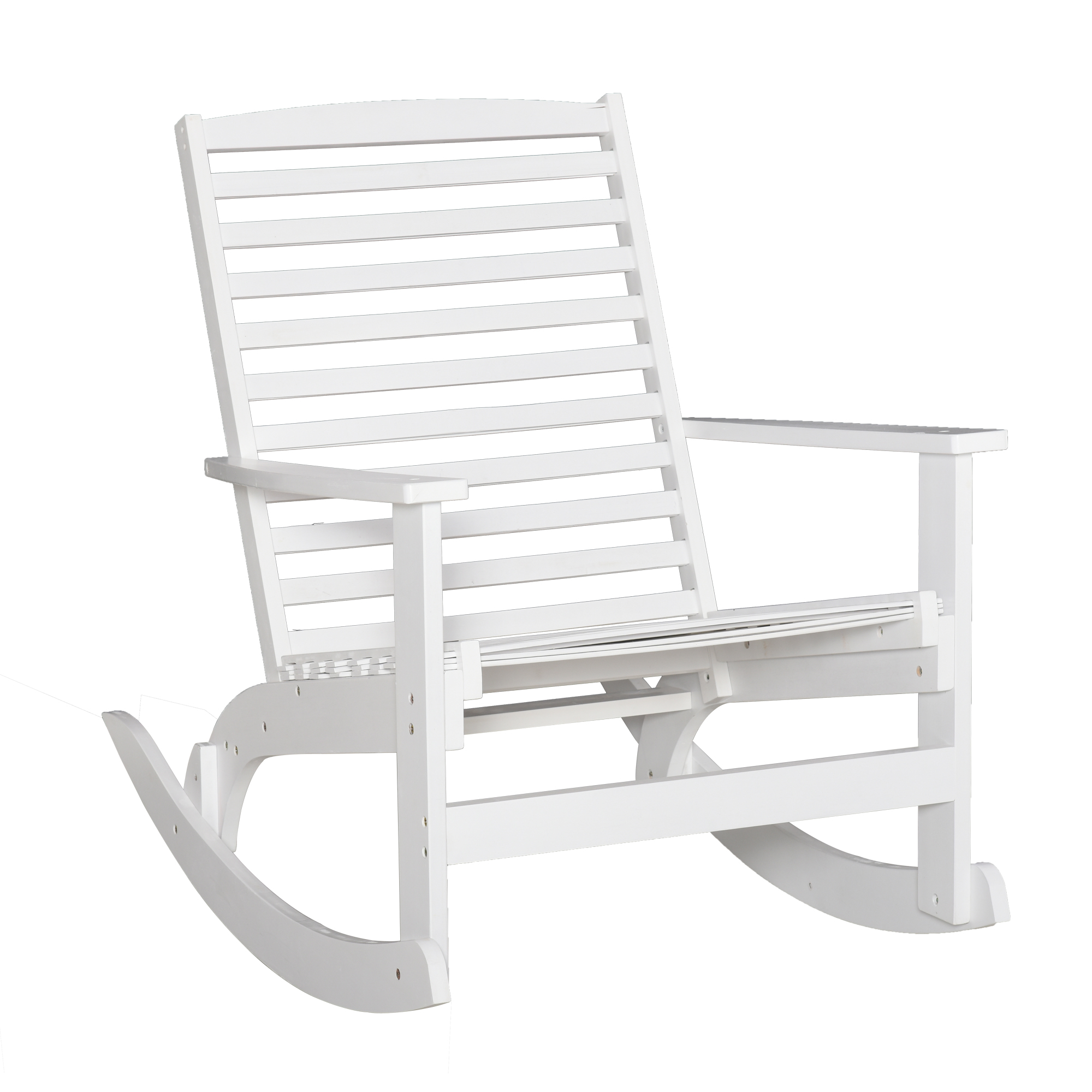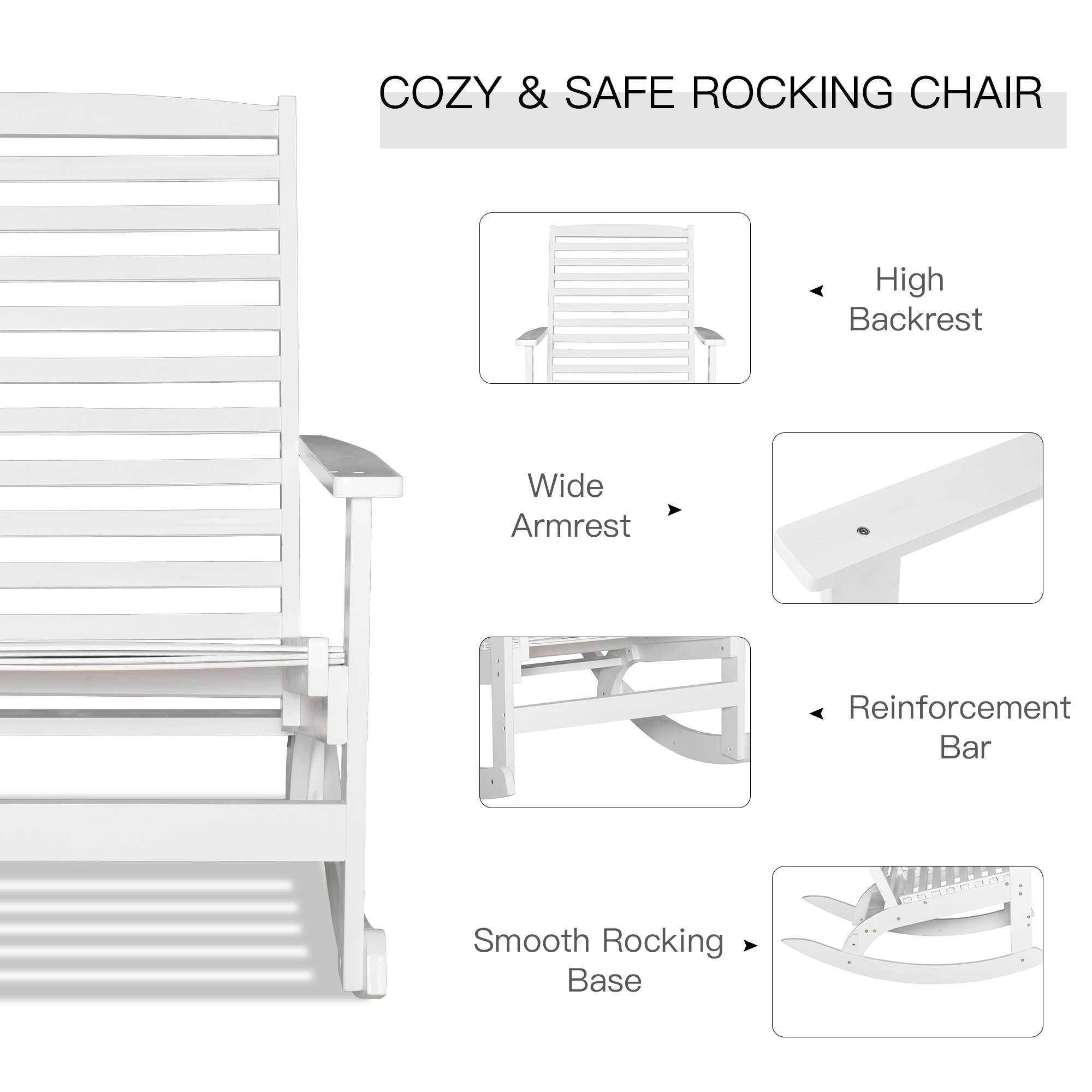 - Comfortable Design: A wide seat, armrests, and sturdy high back slatted backrest, this wooden rocking chair creates a comfortable spot while you rock.
