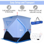 - Insulated Tent: Ensure safety and warmth down to extremely low temperatures. Built with the capability to protect its interior against climates down to -22℉/-30℃, this ice fishing shelter provides a thickly protected, anti-frigid interior in blistering weather while featuring an extended flooring hem that further increases warmth.