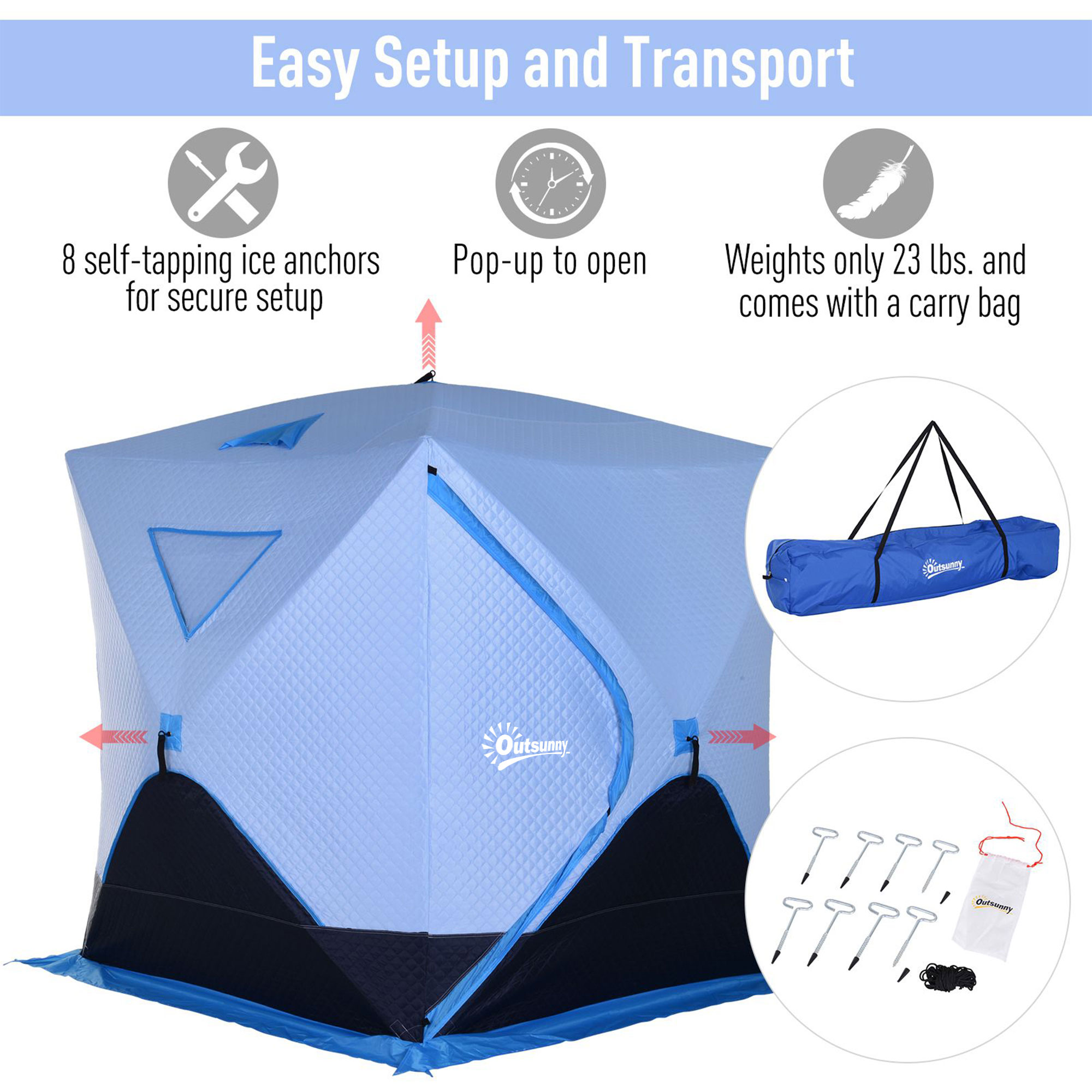 Outsunny Portable Ice Fishing Shelter for 2-4 Anglers, Insulated Pop-Up Tent with Ventilation, Carry Bag | Aosom Canada