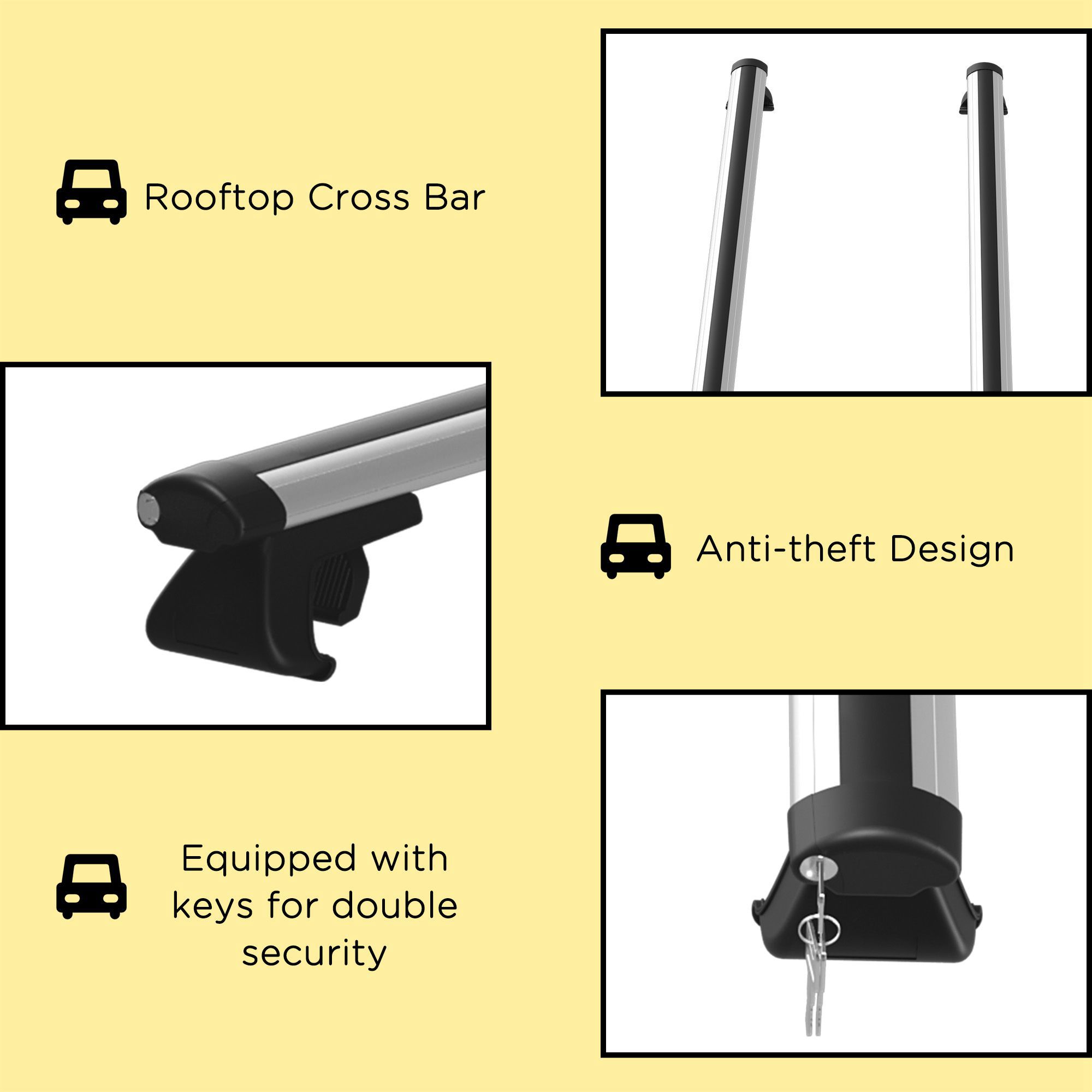 - Anti-Theft Design: Equipped with keys on roof rack for double security. If it is an SUV with a slot, the depth of the slot should reach 0.5-1cm. If it is less than 0.5cm, it cannot be used.