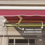 - Solid Frame: This deck awning is constructed of an aluminum and metal frame. Metal square tube ensures stability and sturdiness. A light but powder-coated aluminum frame resists breakdown and for expanded longevity.