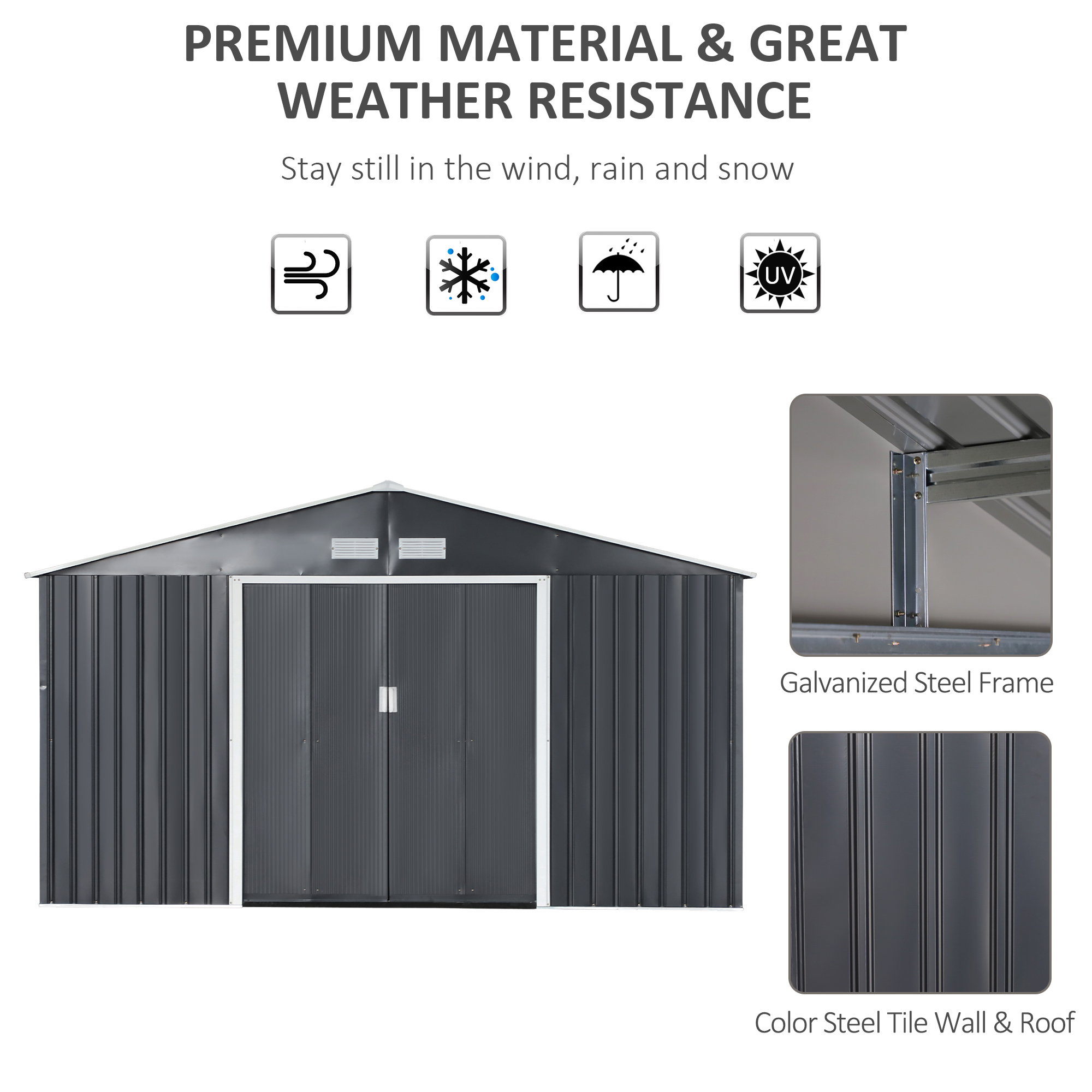 Outsunny Spacious Garden Shed 11.2ft x 12.5ft with 4 Vent Slots, Double Doors, Durable Storage – Grey | Aosom Canada
