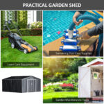 - Large Storage Space: The outdoor storage shed provides valuable storage space for garden tools, lawn care equipment, pool supplies and more.
