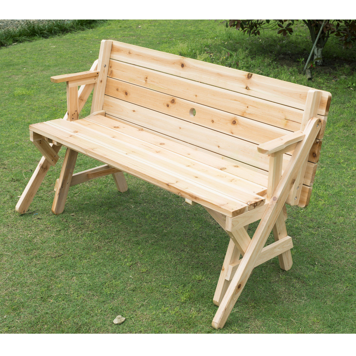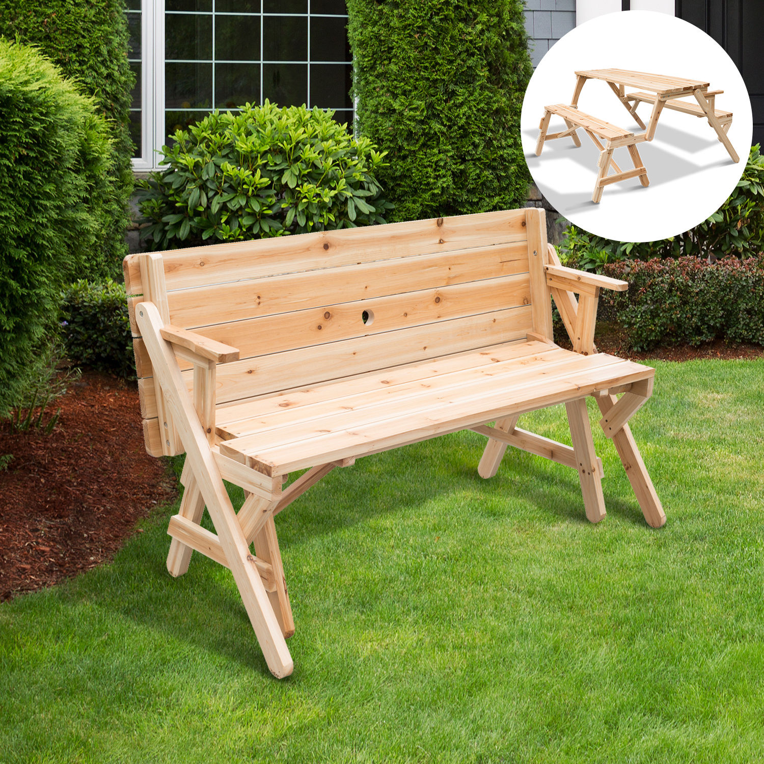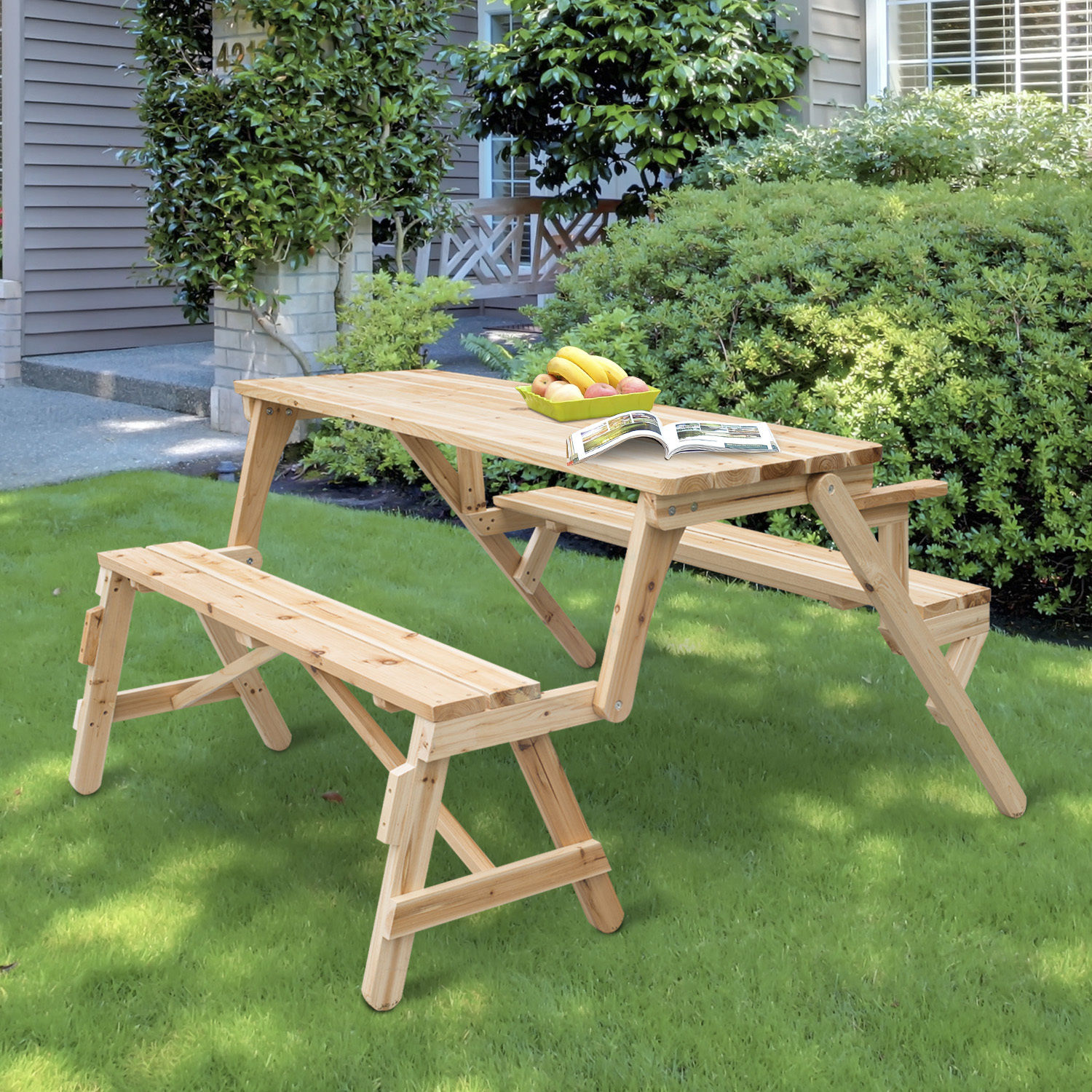 Outsunny Wood Picnic Table Convertible Patio Garden Bench 2 in 1 Outdoor Leisure Nature | Aosom Canada